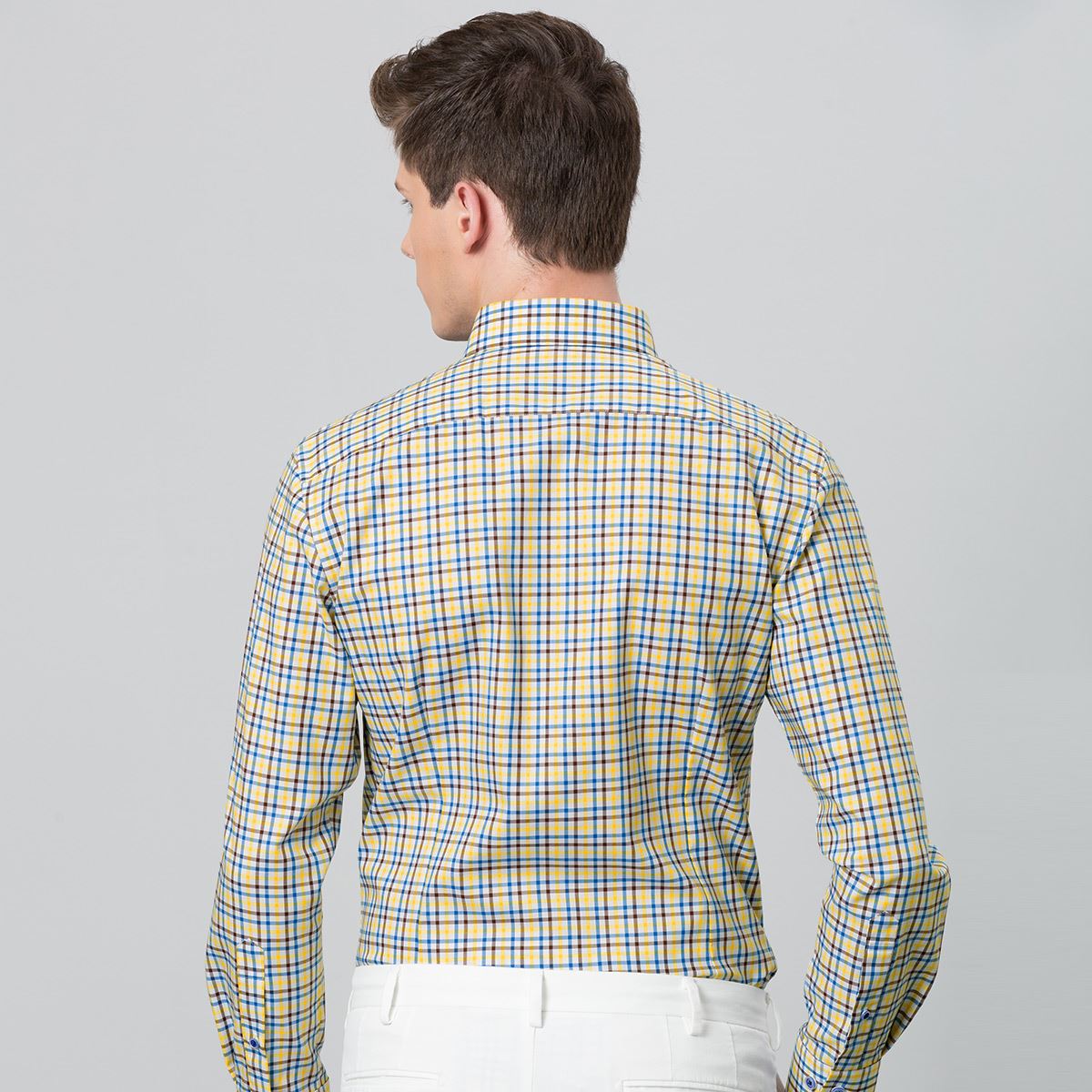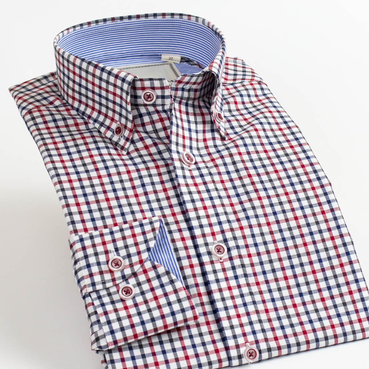 / 2018春秋新款男長袖斜紋彩色大格子襯衫休閑修身型純棉免燙襯衣