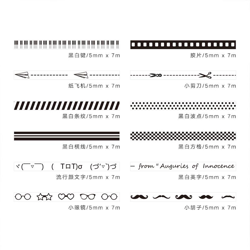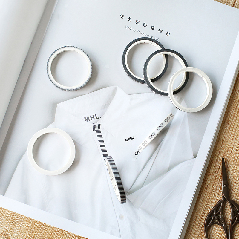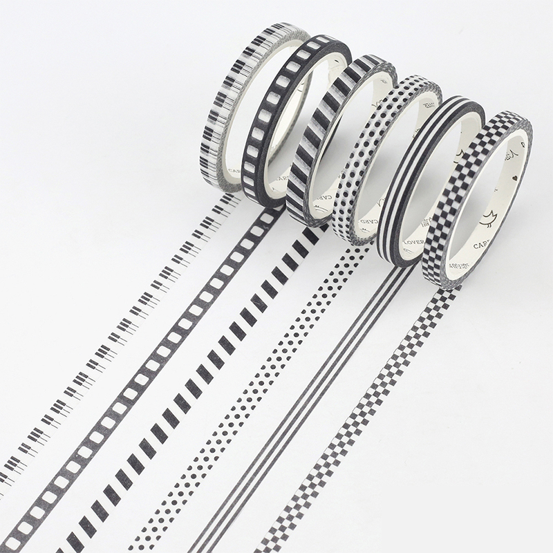 云木雜貨 手撕和紙膠帶黑白日本手帳貼紙 5mm 裝飾手賬日記用品