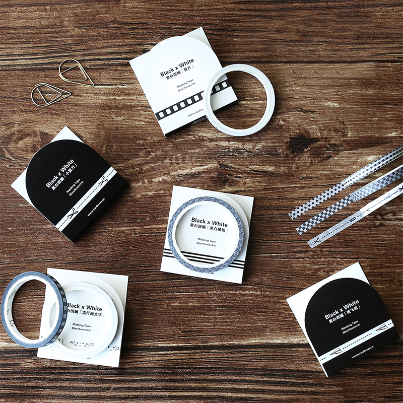 / 云木雜貨 手撕和紙膠帶黑白日本手帳貼紙 5mm 裝飾手賬日記用品