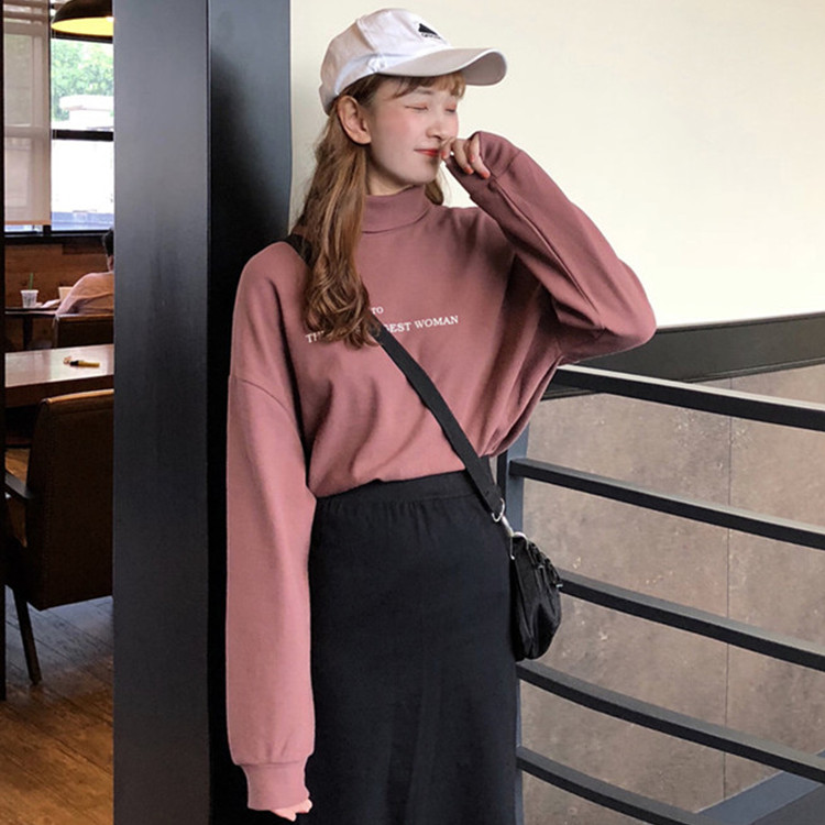 2018新款秋冬韓版寬松字母半高領套頭pp home超火衛衣上衣外套女