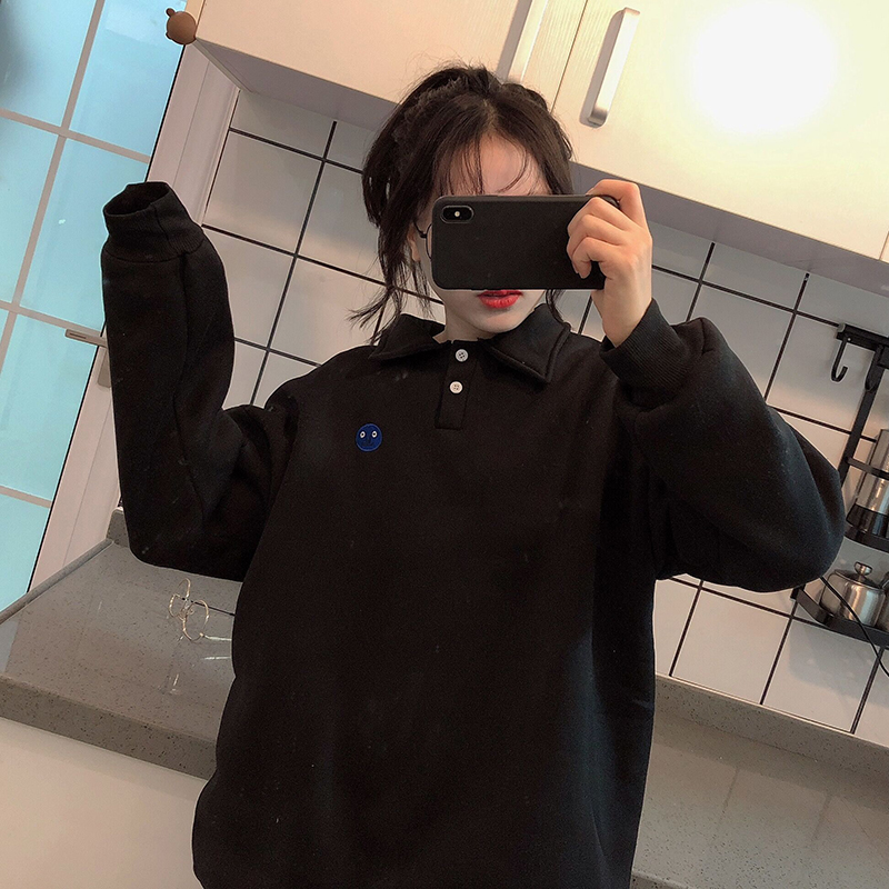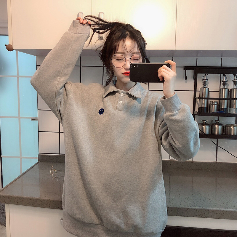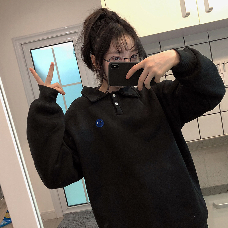 原宿風刺繡翻領衛衣女秋冬裝2018新款學生韓版慵懶寬松長袖外套潮