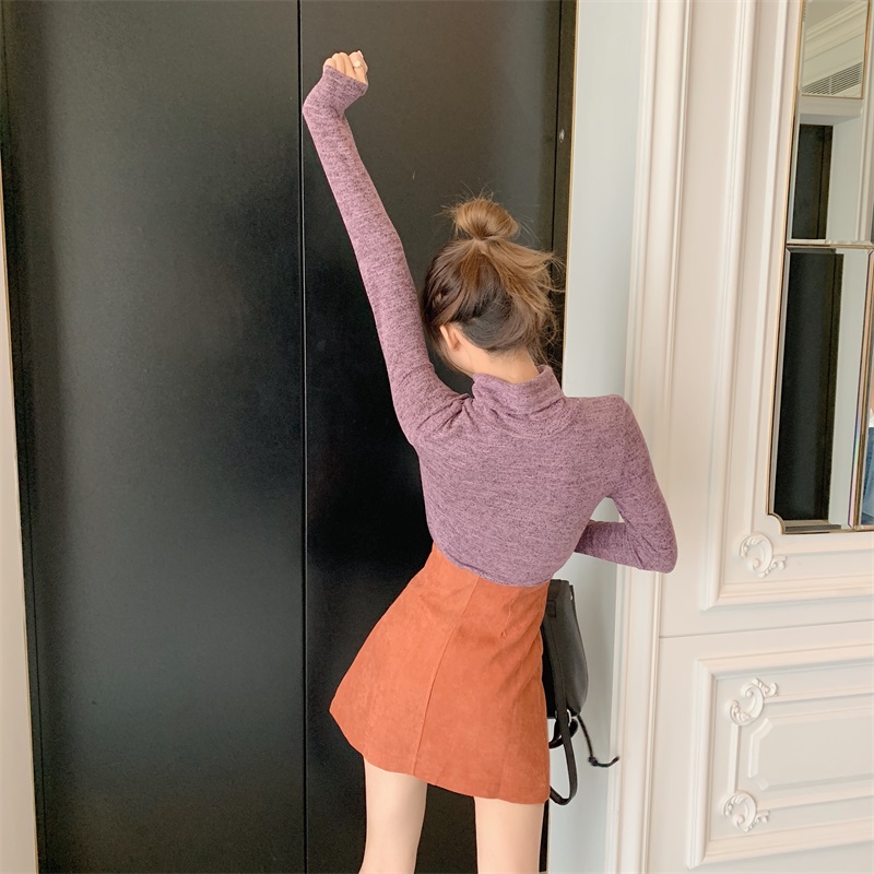 新款排扣不規則高腰半身裙包裙時尚套裝純色高領基礎打底衫兩件套
