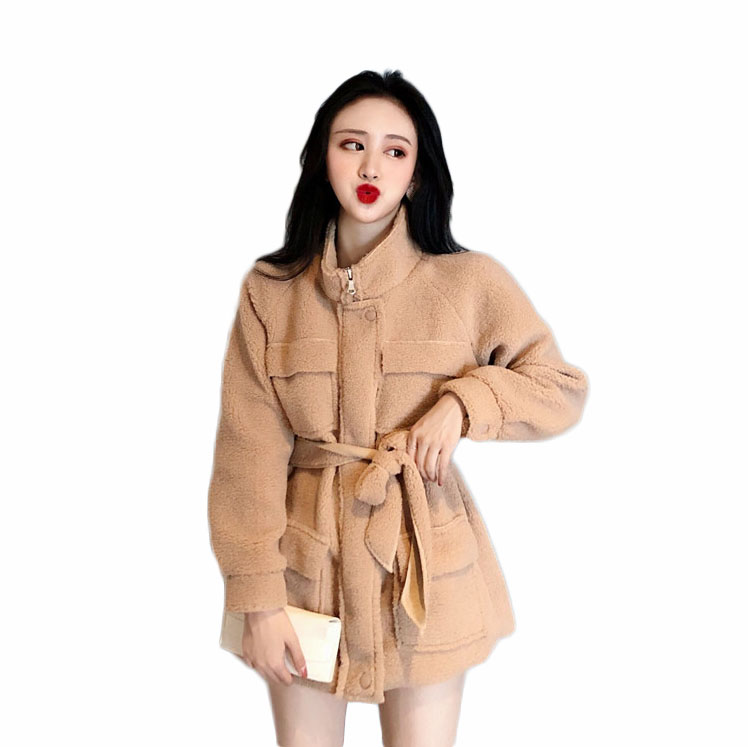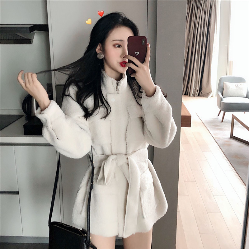 毛呢外套女冬季大衣新款2018韓版立領拉鏈收腰顯瘦百搭羊羔毛上衣