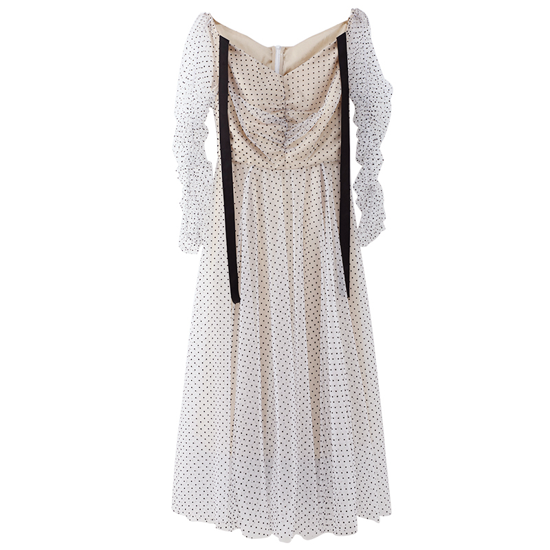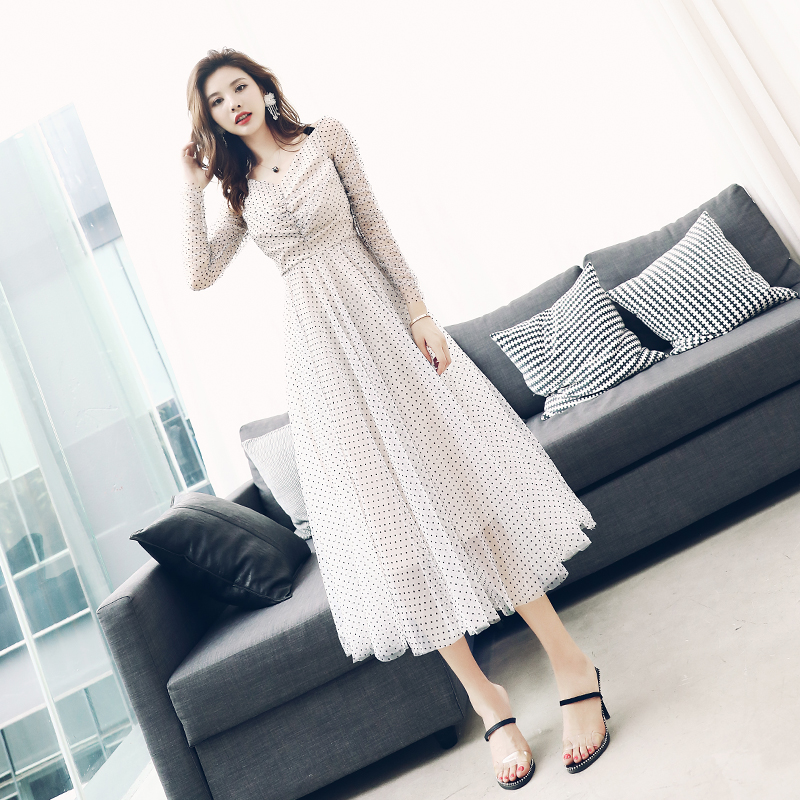 / 淑女波點性感連衣裙女夏冷淡風2018新款收腰長袖小清新收腰裙子