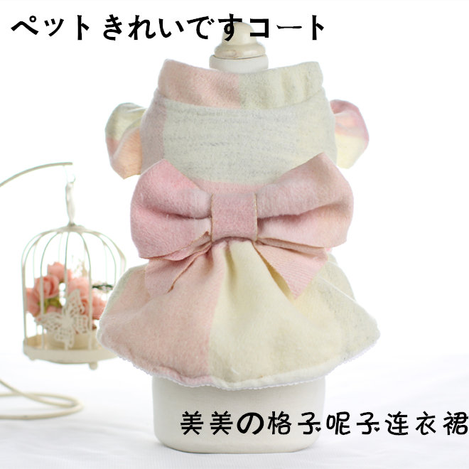 日式和風の呢子蝴蝶結裙~寵物呢子裙 狗狗冬裝泰迪棉衣比熊連衣裙