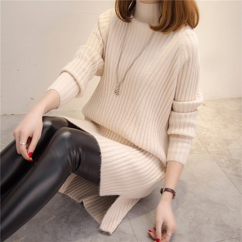 冬裝新款潮女裝純色高領針織打底衫加厚毛衣女秋冬中長款線衣