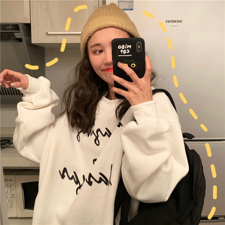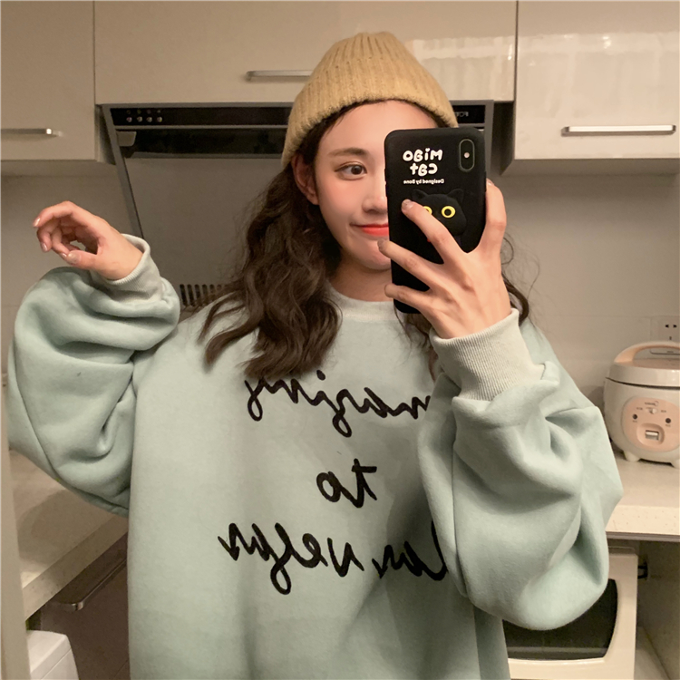 2018新款秋冬韓版寬松慵懶風字母加絨加厚套頭超火衛衣上衣外套女