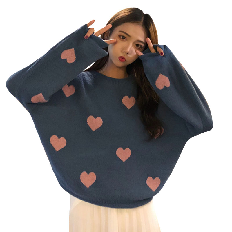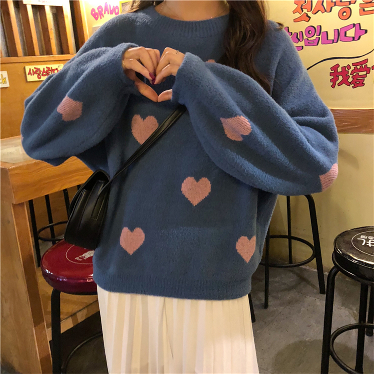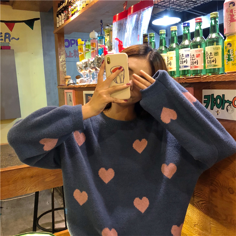 / 秋冬女裝韓版寬松百搭甜美慵懶風愛心網紅套頭針織衫毛衣上衣外套