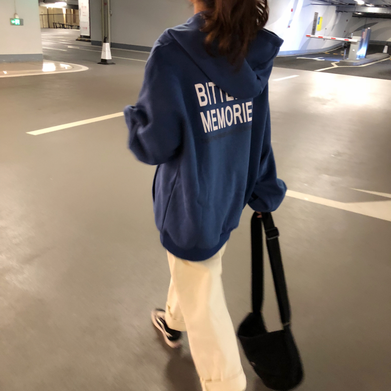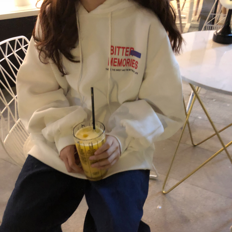 2018新款秋冬韓版原宿風字母加絨加厚寬松連帽套頭衛衣上衣外套女
