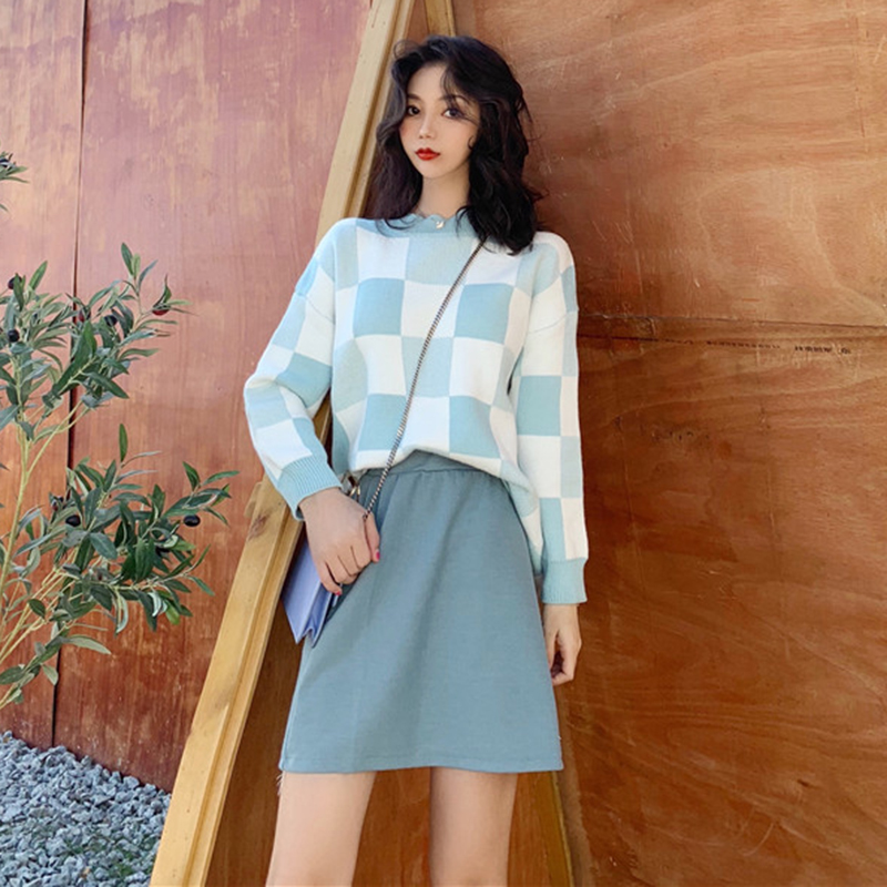 秋冬女裝2018新款港味復古格子網紅套頭針織衫百搭寬松毛衣外套潮