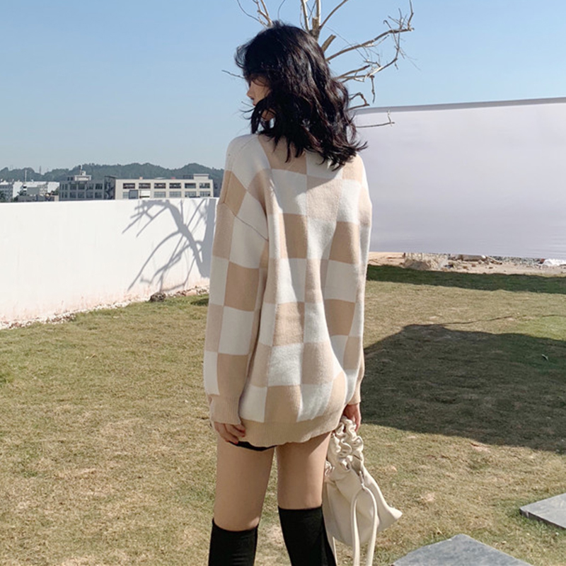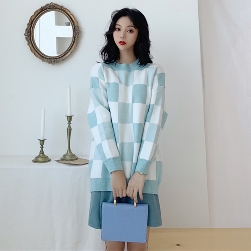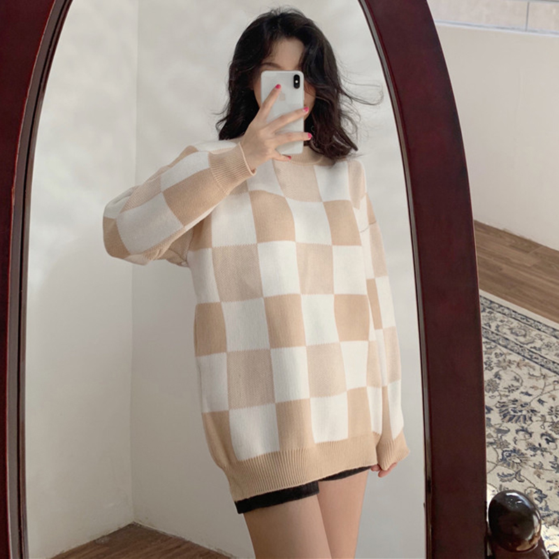 / 秋冬女裝2018新款港味復古格子網紅套頭針織衫百搭寬松毛衣外套潮