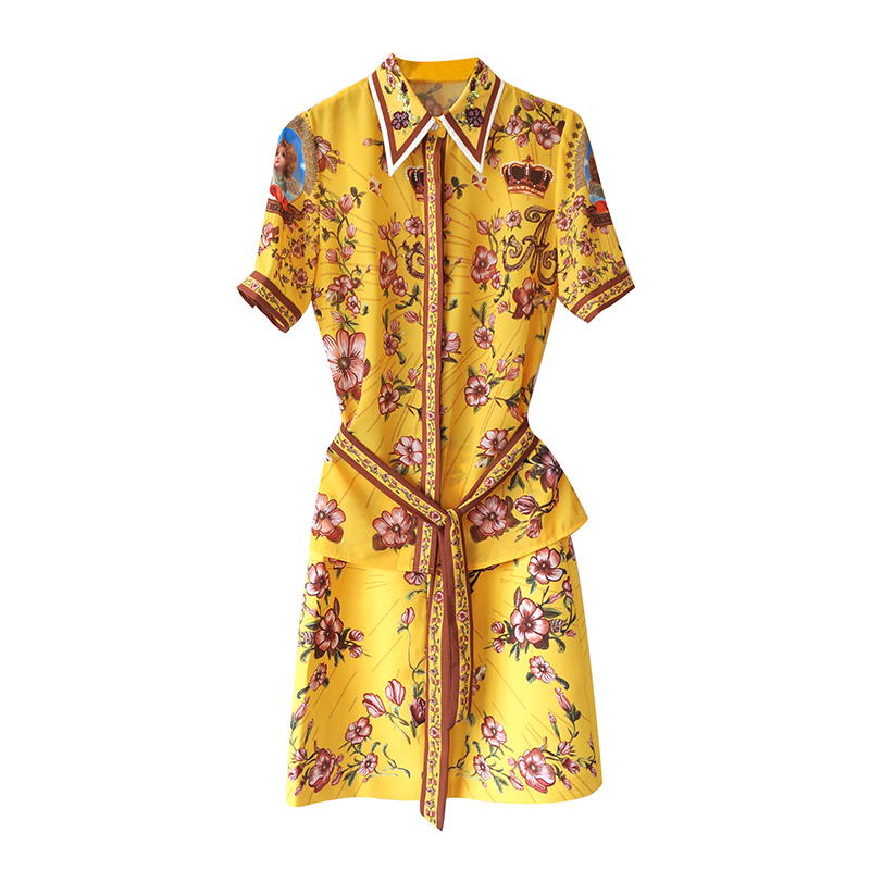 / 歐洲站名媛印花上衣釘珠套裝女夏2018新款高腰半裙時尚兩件套潮