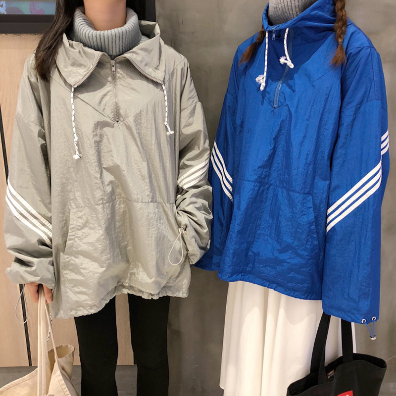 寬松假兩件衛衣2018新款女秋冬裝港風高領加絨外套長袖休閑上衣潮