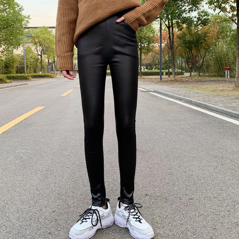 外穿打底緊身小腳褲女秋冬裝2018新款韓版黑色高腰顯瘦pu皮長褲子