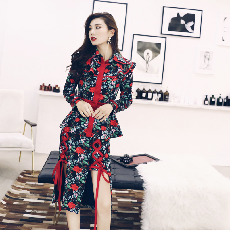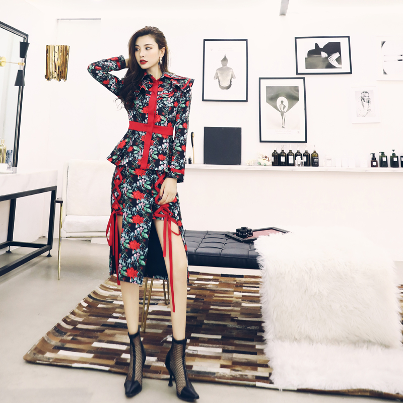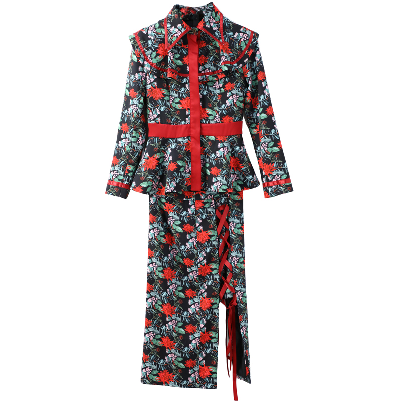 高端女裝網紅同款連衣裙女印花不規則半身裙碎花上衣兩件套裙套裝