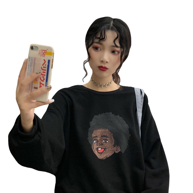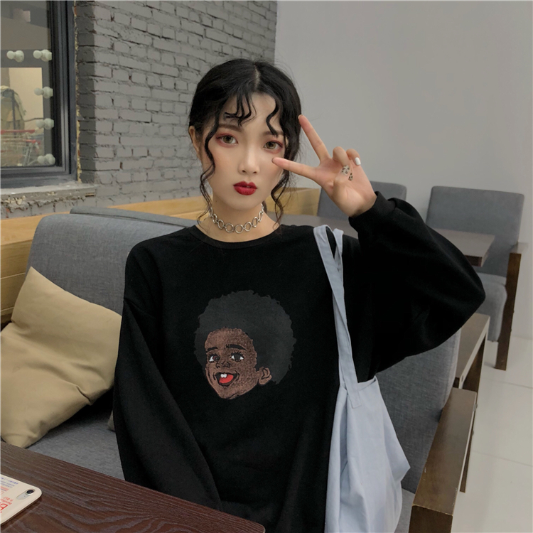 秋季女裝韓版中長款復古原宿風卡通BF風寬松pp home超火衛衣外套