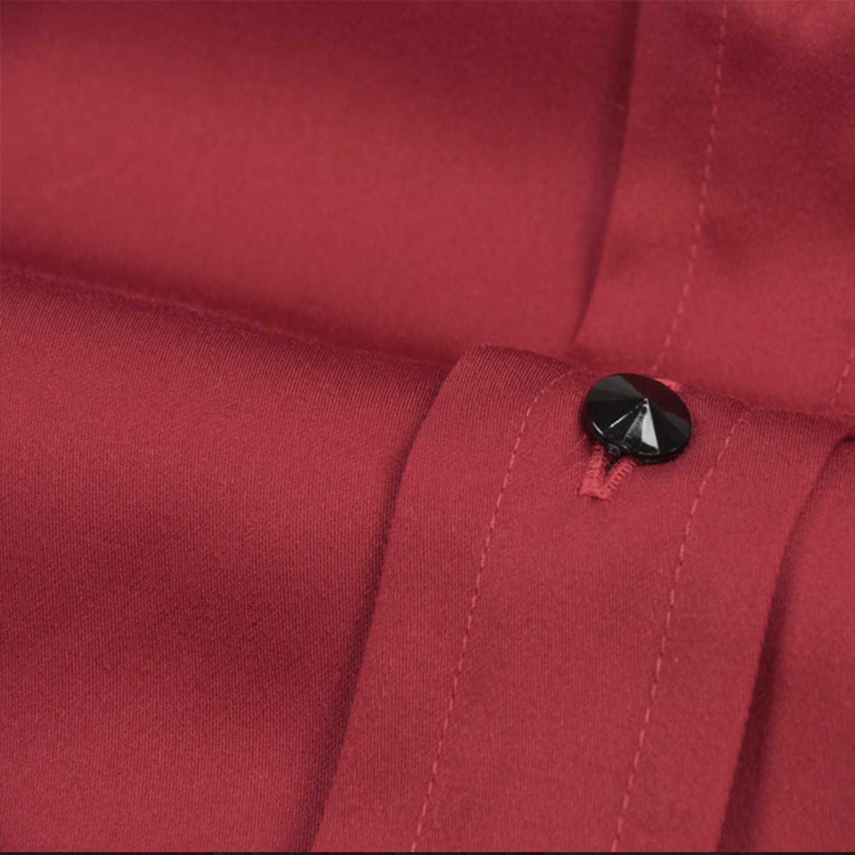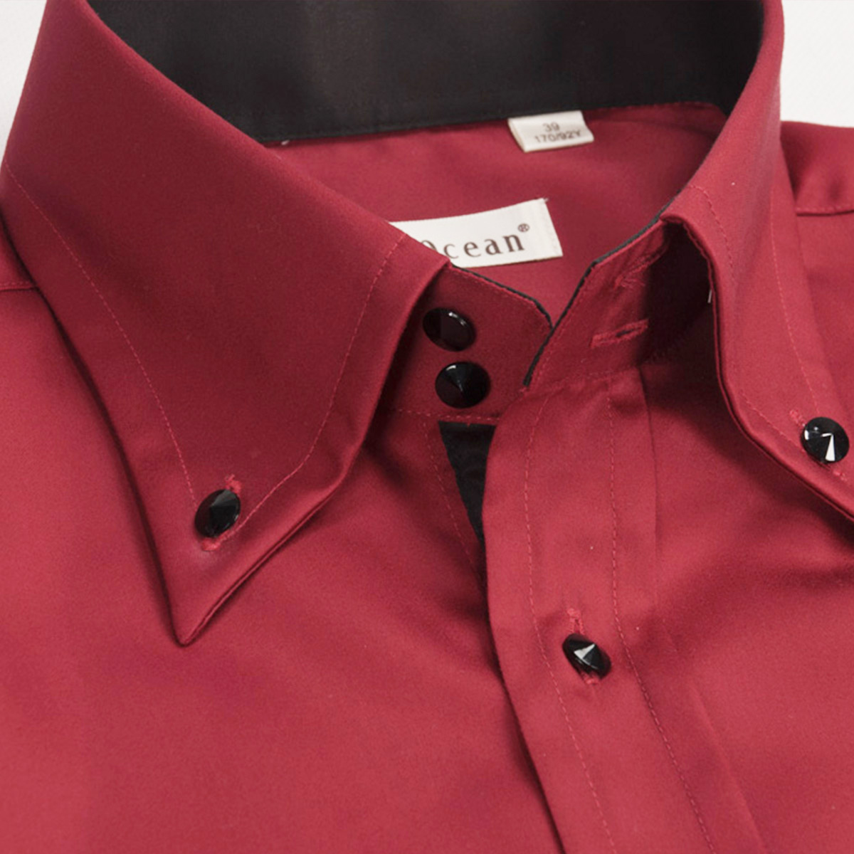/ 深海男士韓版絲光棉修身酒紅色襯衫男長袖襯衣新郎結男裝禮服潮