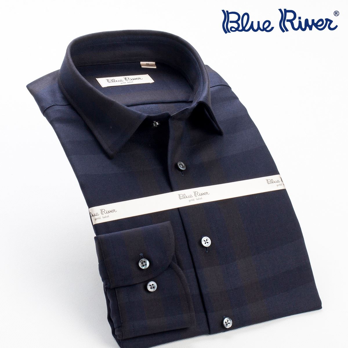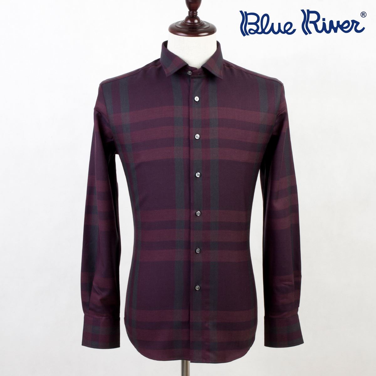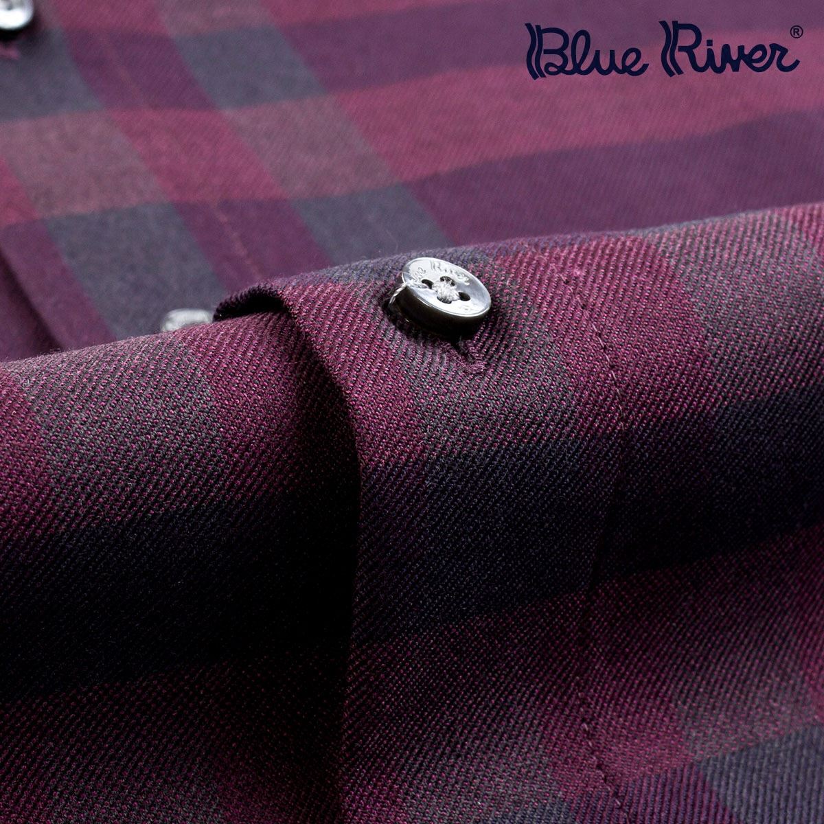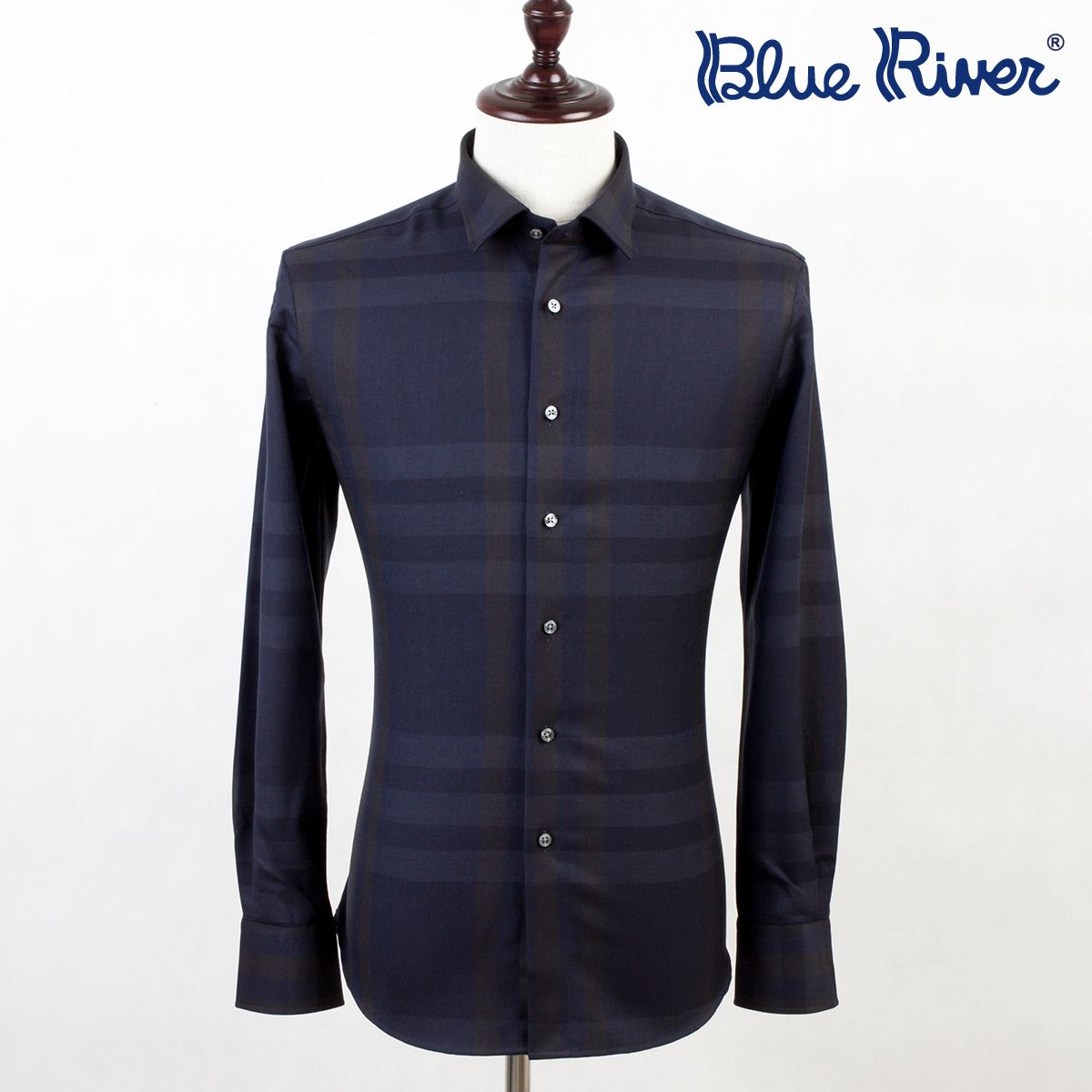 / BLUE RIVER/藍河秋秋新品長袖男襯衫格子桑蠶絲襯衣羊毛商務男裝