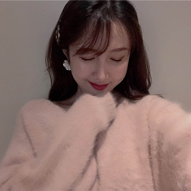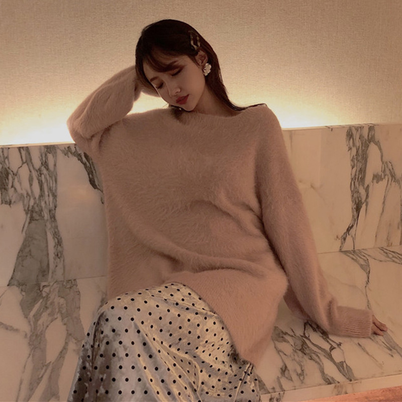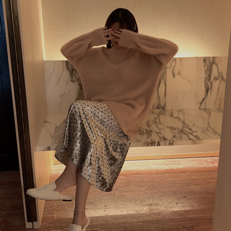 秋裝女2018新款寬松中長款圓領套頭毛衣復古波點絲絨半身裙子套裝