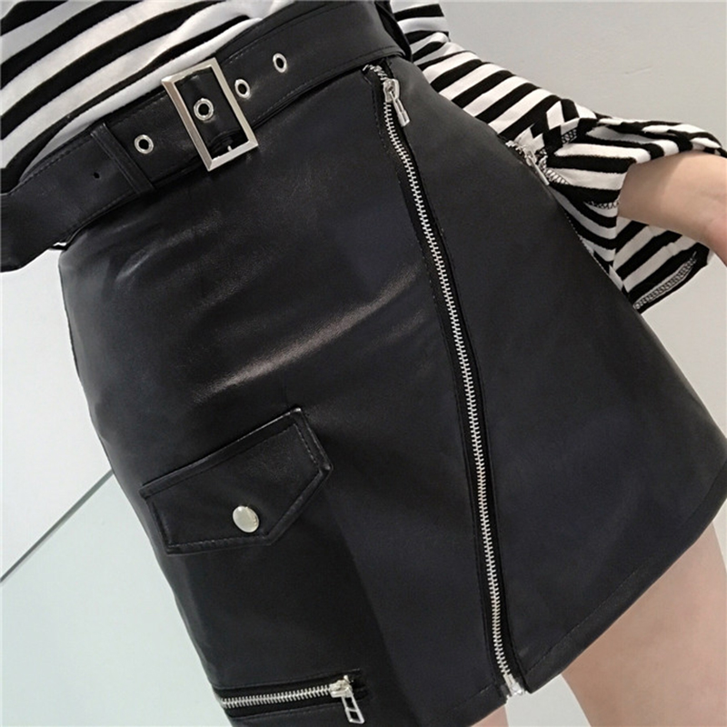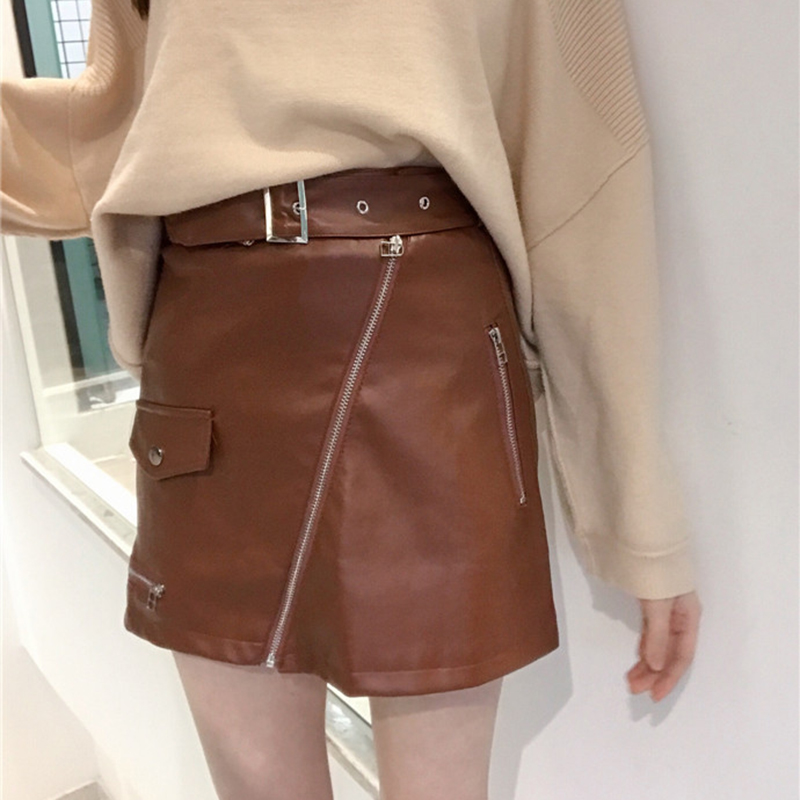 秋冬新款女裝高腰修身顯瘦拉鏈裝飾PU小皮裙學生包臀半身裙短裙女