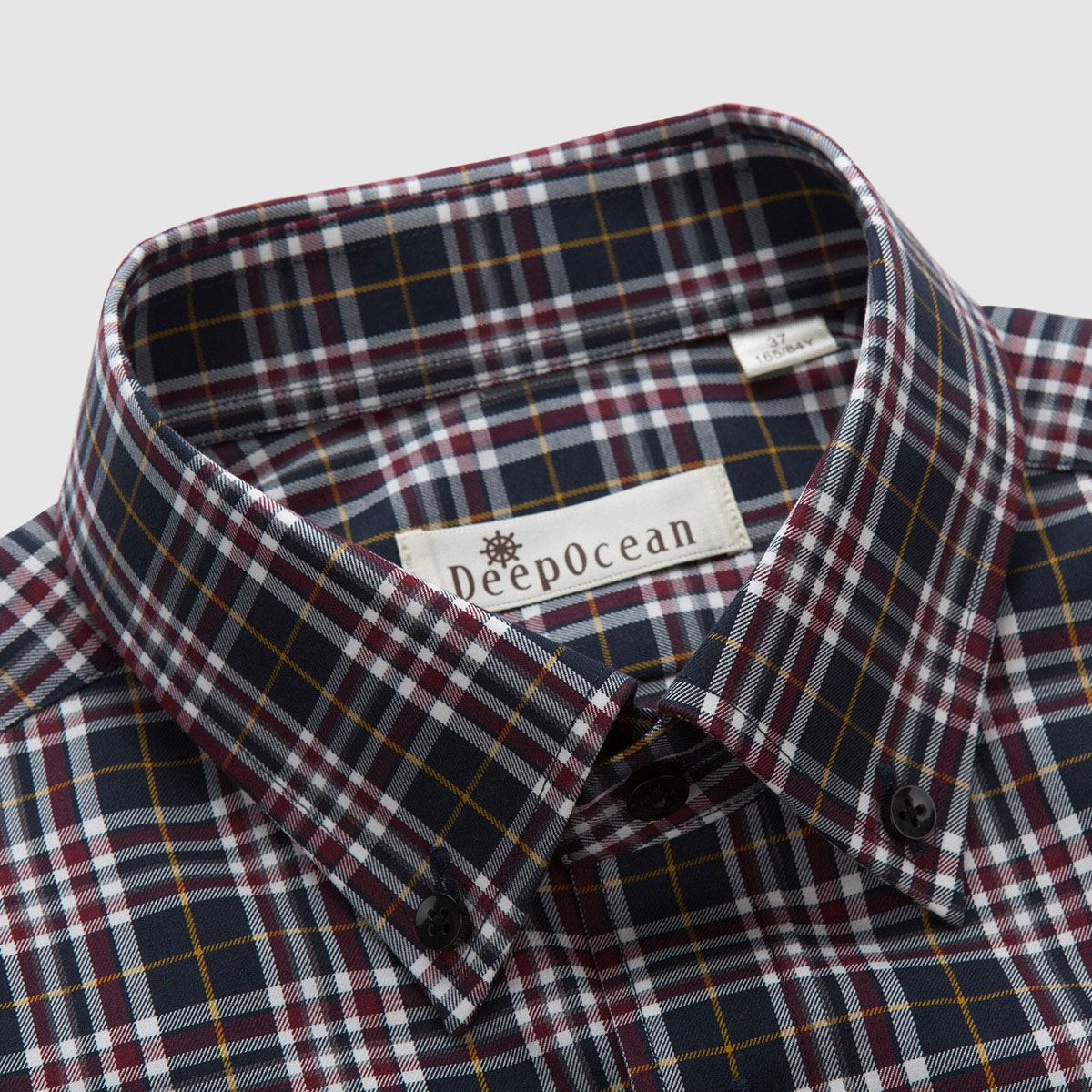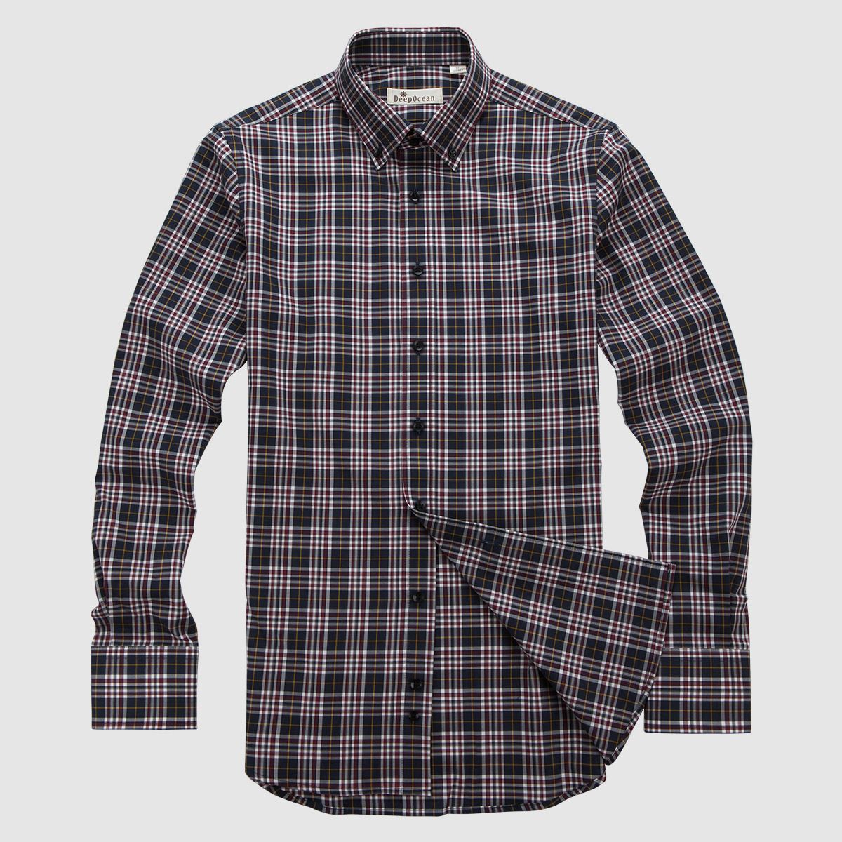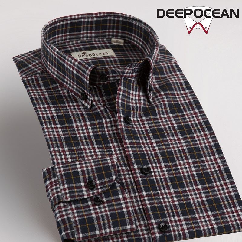 / 春 羊毛棉混紡深色大格子男式襯衫長袖修身輕保暖正裝男裝襯衣