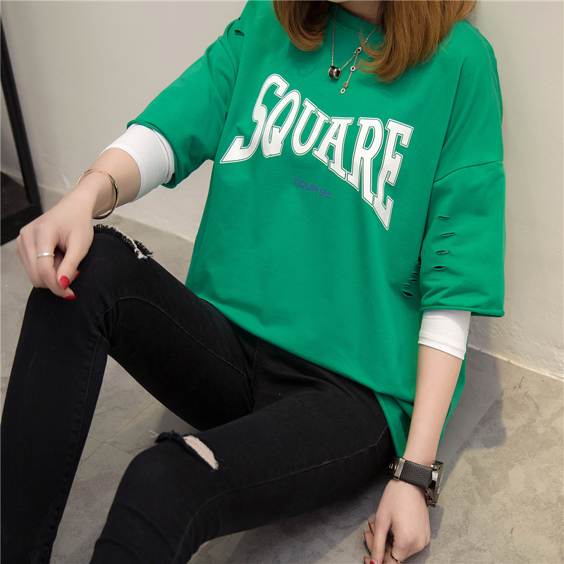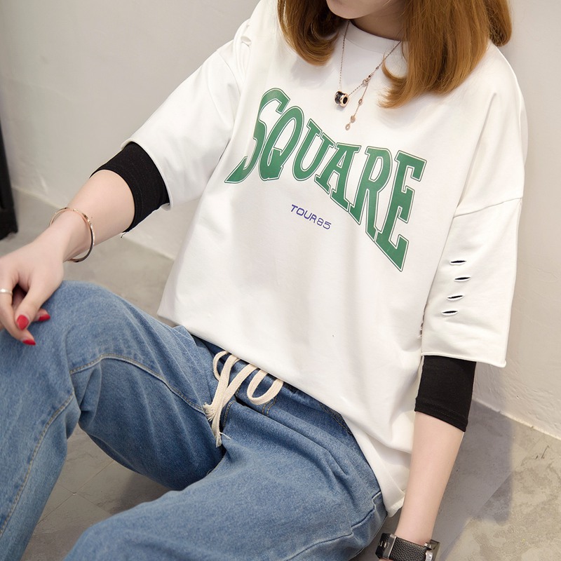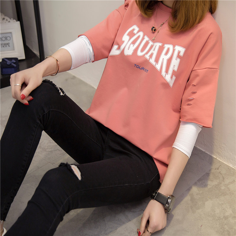 / 長袖t恤女寬松韓版百搭衛衣假兩件體恤衫上衣夏裝新款女裝潮