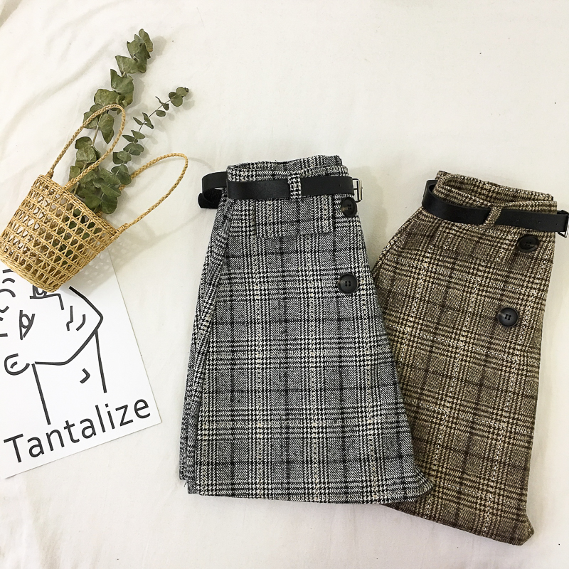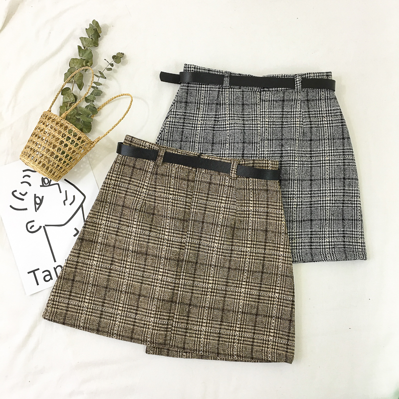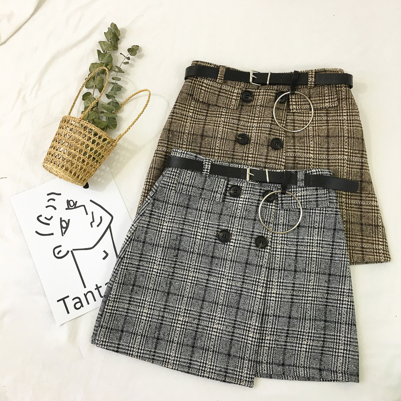 / 時尚韓版時尚復古毛呢格子A字短裙女秋冬季新款百搭高腰半身裙女