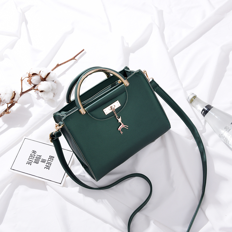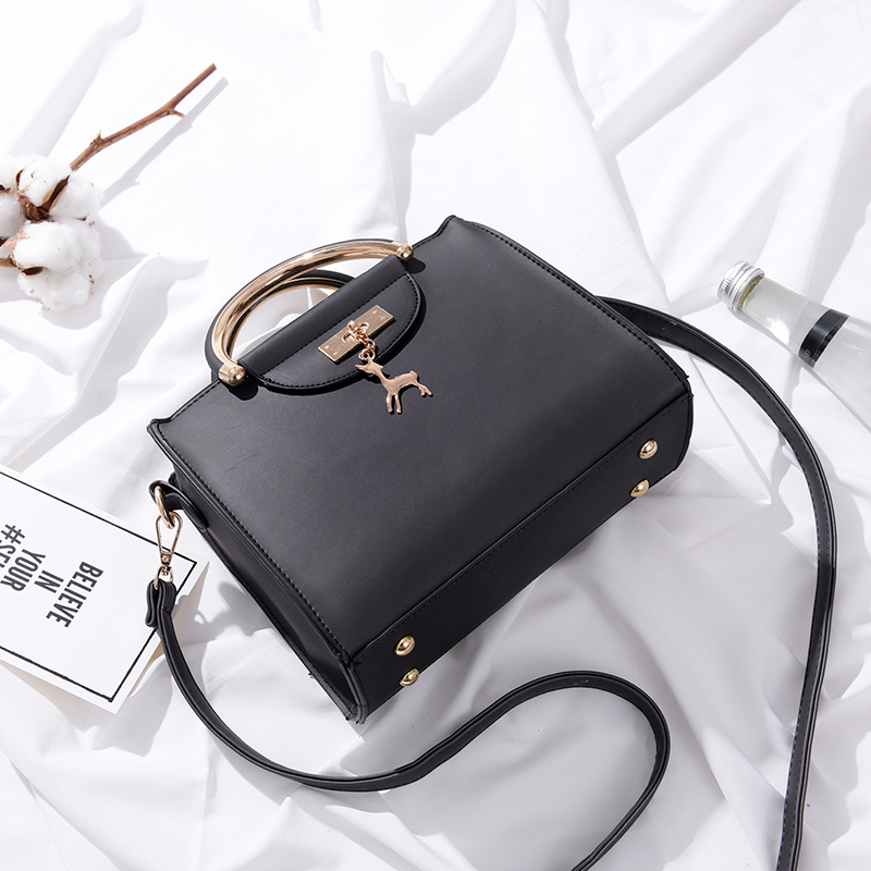 / 春季新款小鹿吊飾簡約手提包女包女士時尚單肩包斜跨包小包包