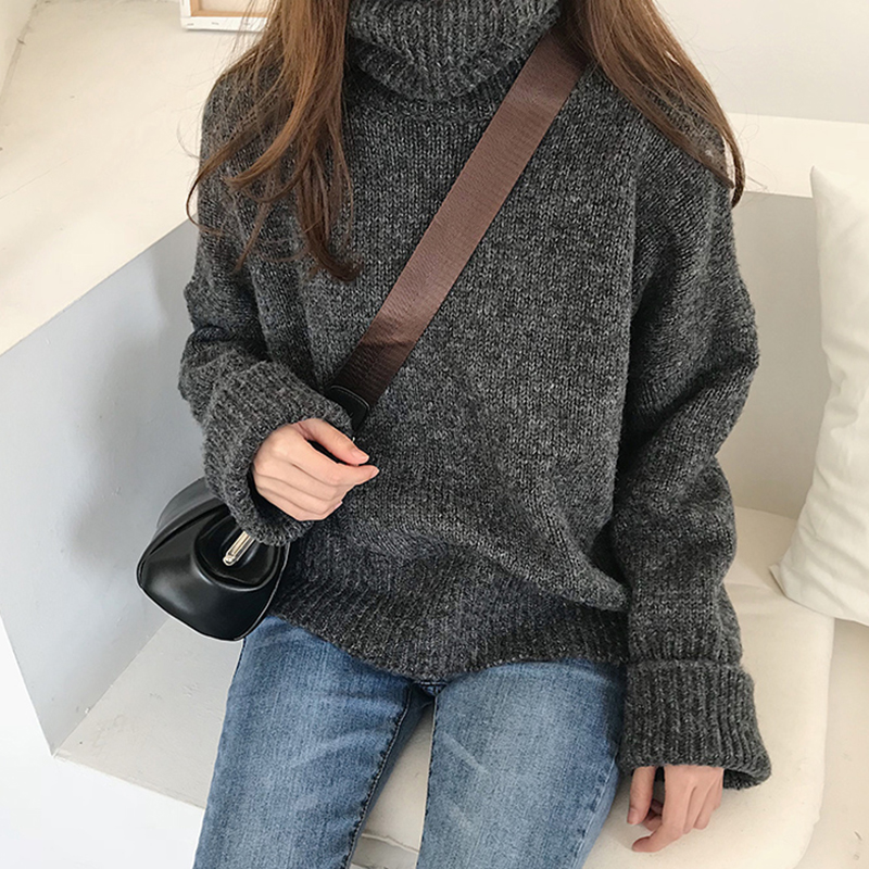 秋冬女裝2018新款韓版chic寬松高領粗線打底毛衣學生休閑針織外套