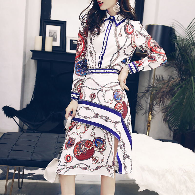 早秋新款女裝2018初秋套裝女網紅chic裙兩件套韓版印花氣質秋裝潮
