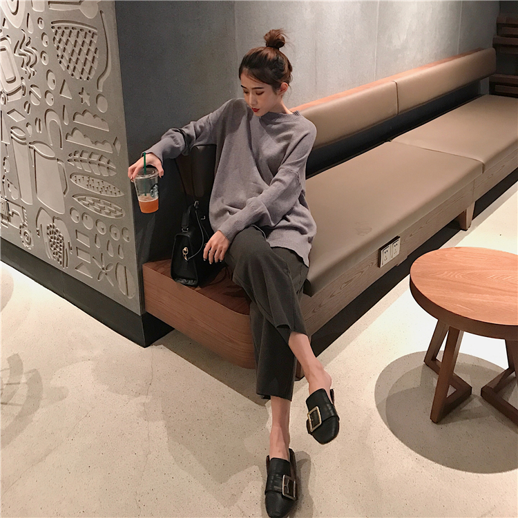 / 慵懶風網紅毛衣女2018新款兩件套裝復古寬松針織衫毛呢闊腿褲秋冬