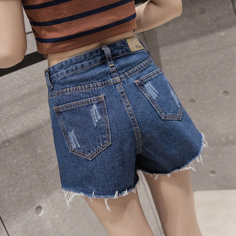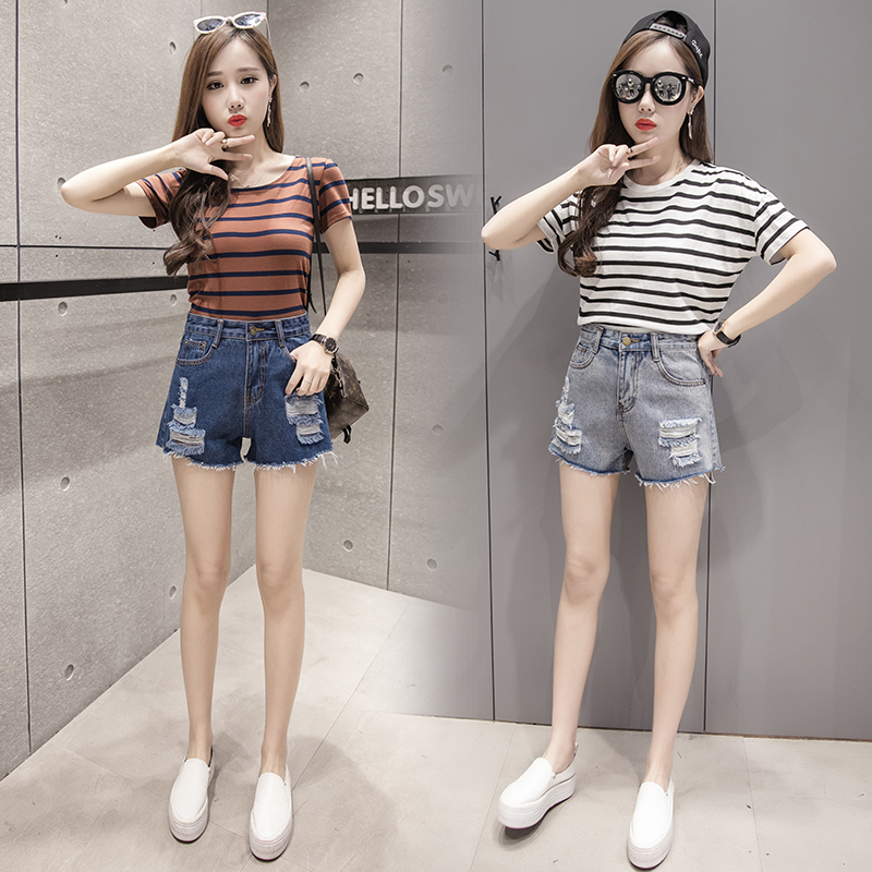 / 春夏季韓版顯瘦高腰寬松學生休閑褲破洞毛邊牛仔短褲女潮