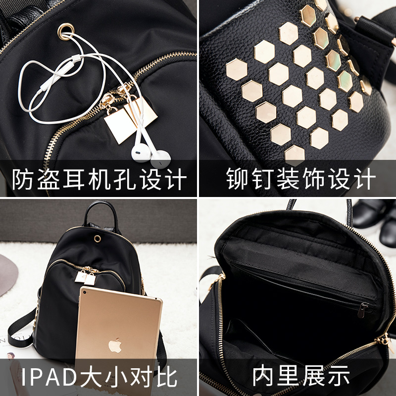 鉚釘雙肩包女韓版時尚個性百搭牛津帆布包包新款女士背包女潮