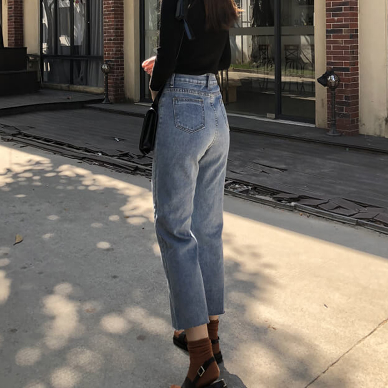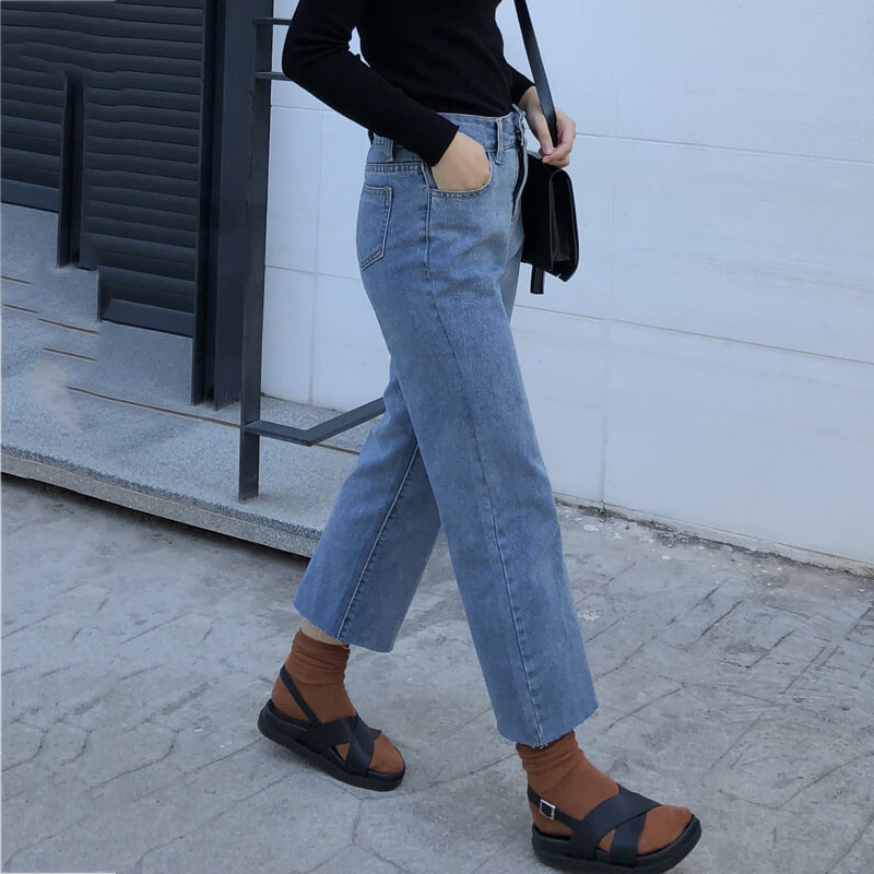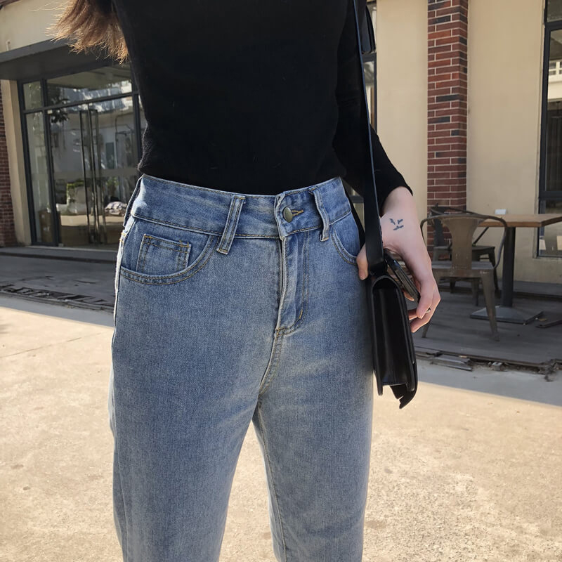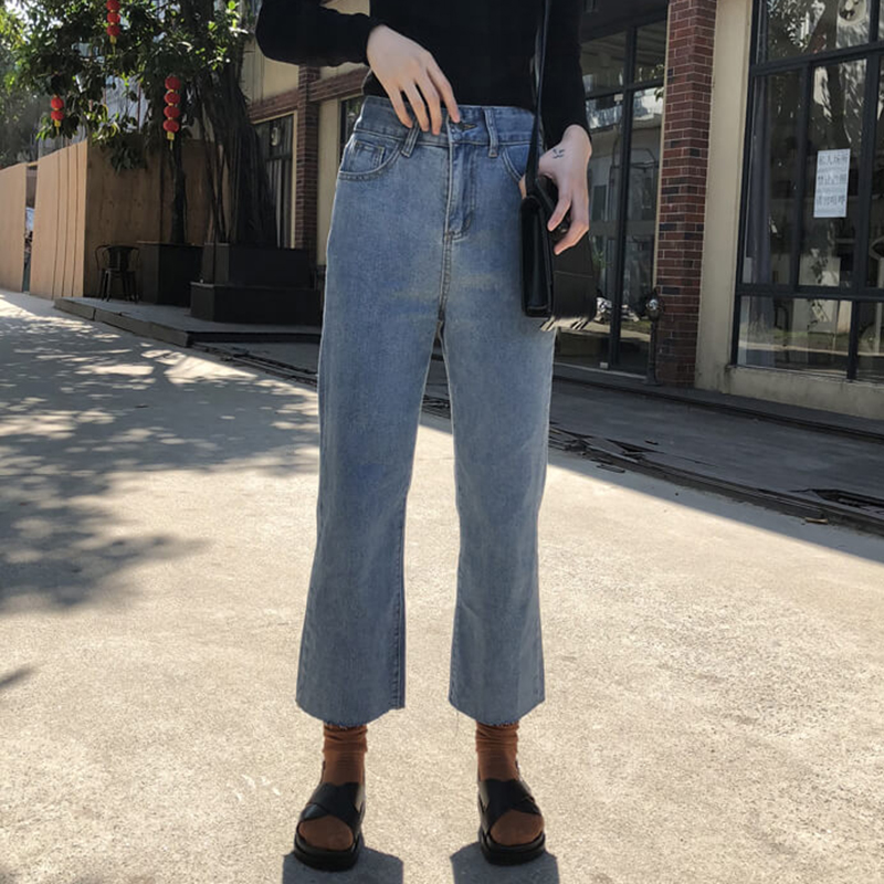 / 水洗牛仔褲女秋冬裝2018新款韓版高腰直筒褲學生寬松顯瘦九分褲子