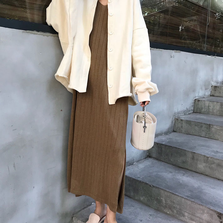 馬海毛網紅毛衣女2018新款針織開衫外套冷淡風針織吊帶連衣裙套裝