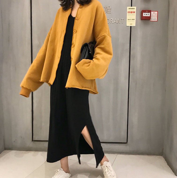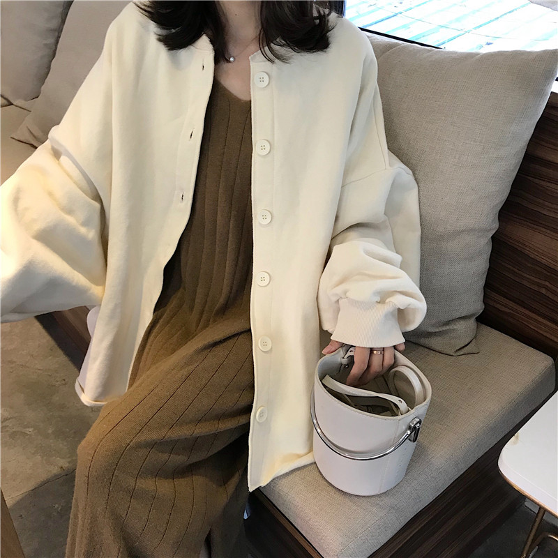 早秋衛衣2018新款女長袖韓版寬松百搭氣質燈籠袖單排扣衛衣開衫潮