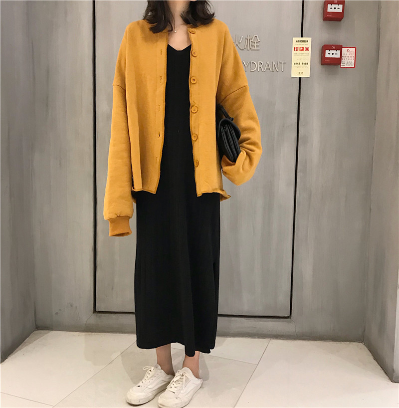 杏色衛衣|黃色衛衣|黑色長袖針織裙|咖色長袖針織裙