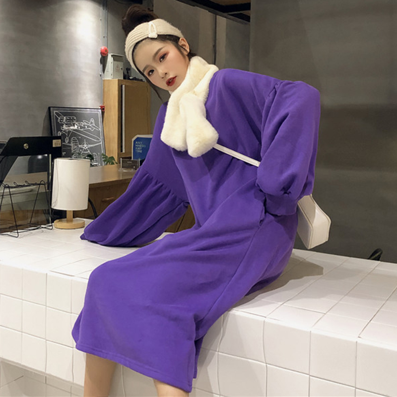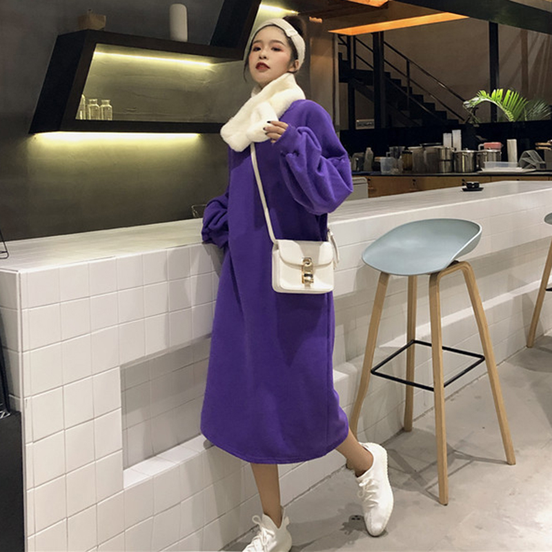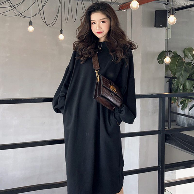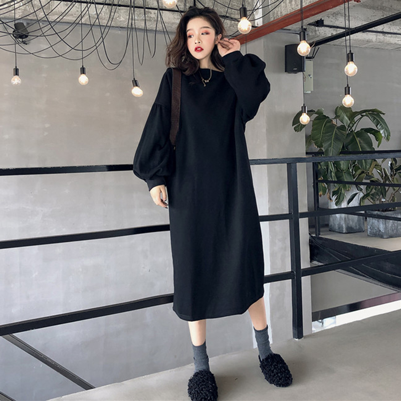 / 圓領寬松加絨衛衣2018新款女秋冬裝港風學生長款外套休閑黑色上衣