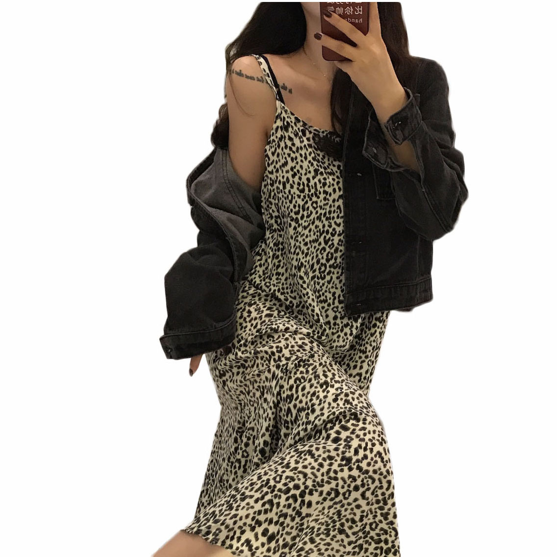 港味女神套裝秋冬新款色洗水牛仔外套+豹紋不規則長裙時尚兩件套