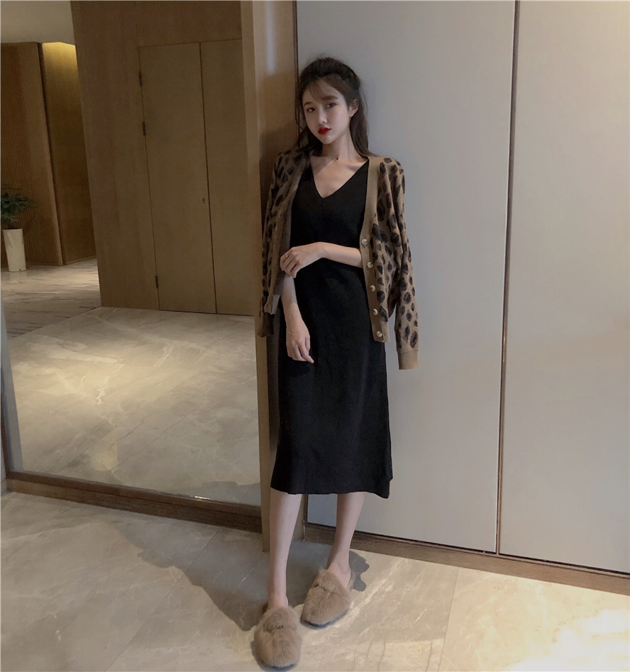 / 2018秋裝新款韓版時尚外套女百搭chic復古撞色豹紋v領針織開衫潮