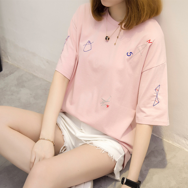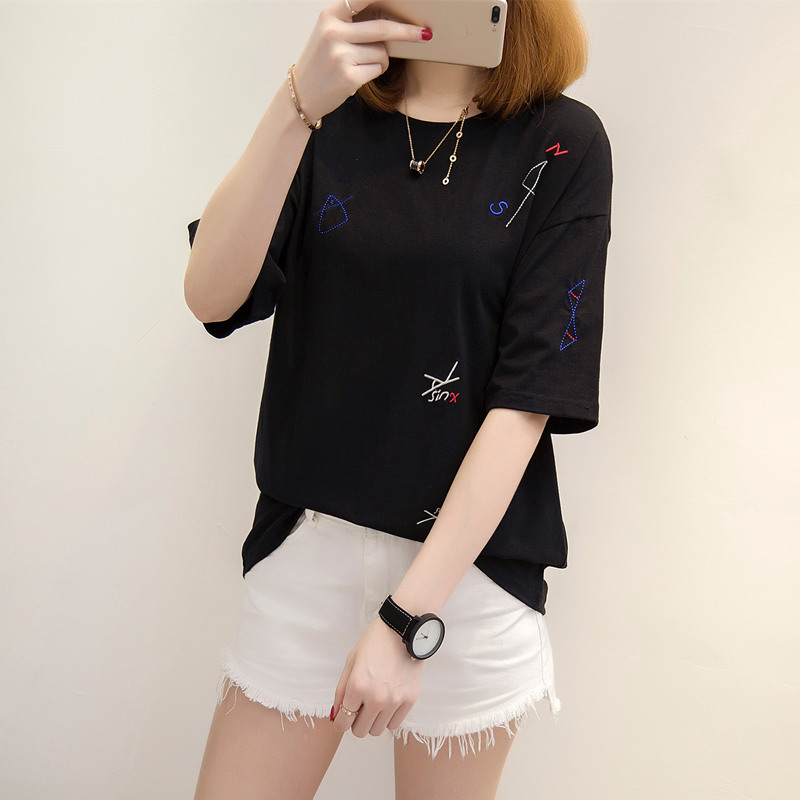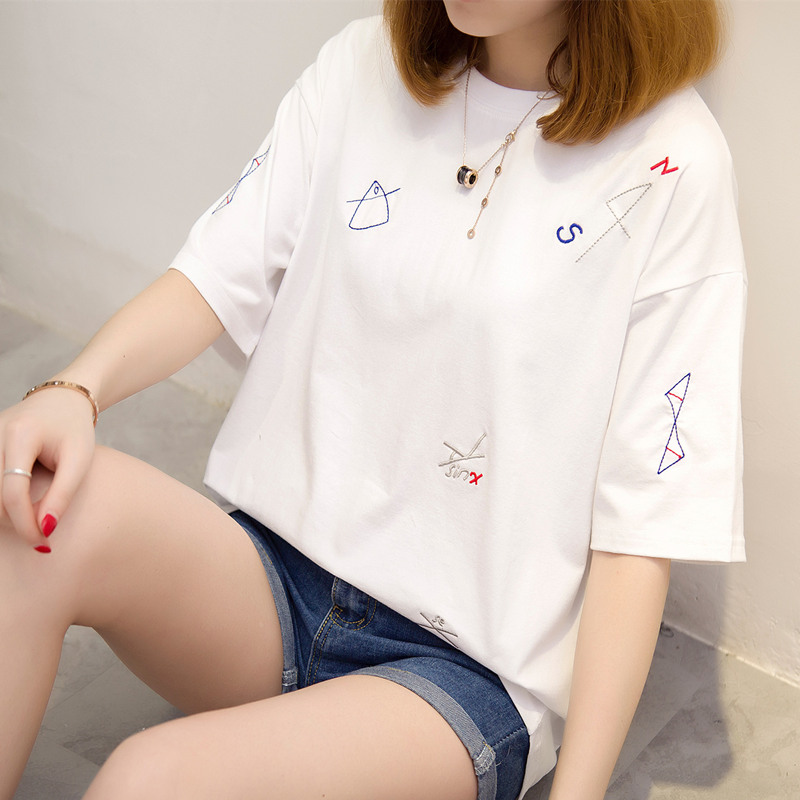短袖t恤女夏裝新款韓版寬松短袖體恤衫圓領上衣女學生百搭潮