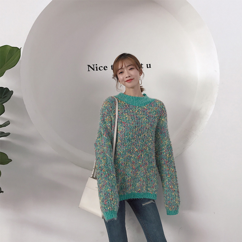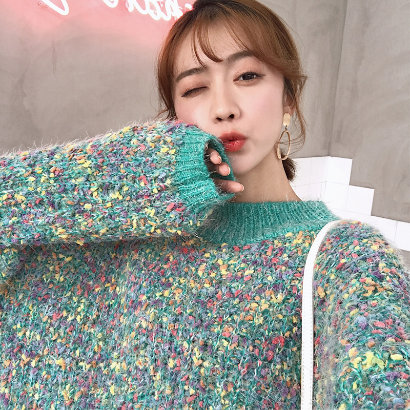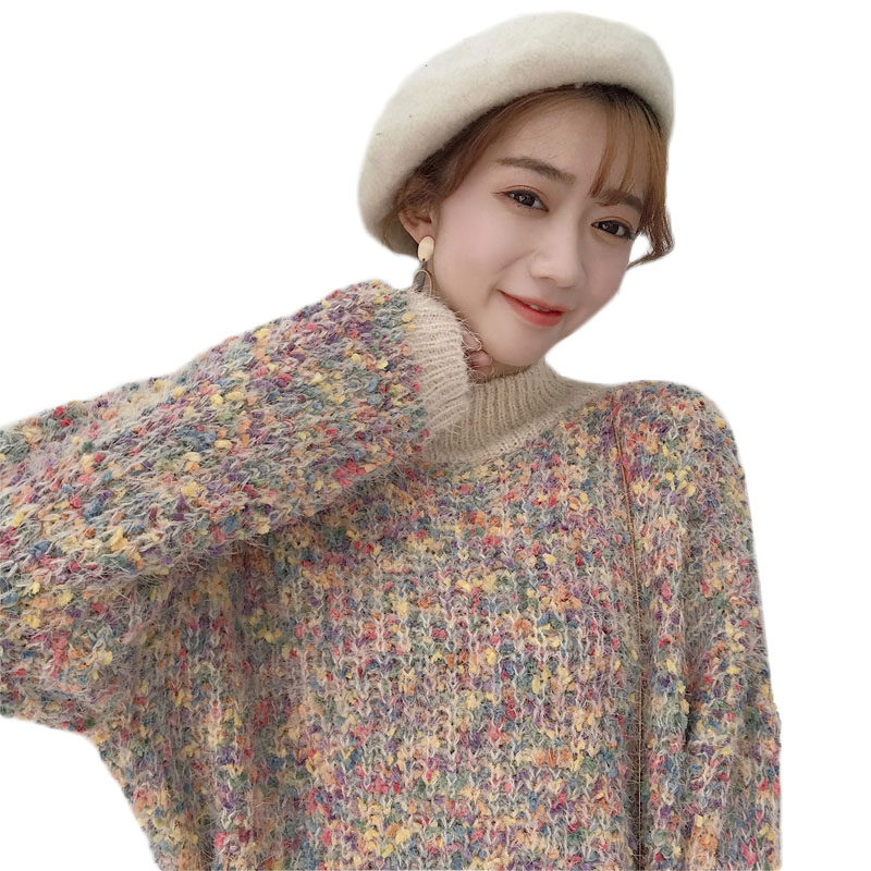 / 港味慵懶風套頭毛衣女2018新款秋百搭長袖寬松圓領花線針織上衣潮