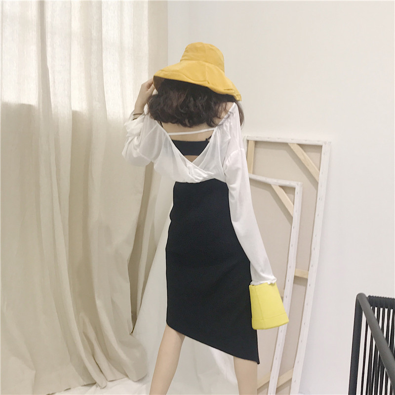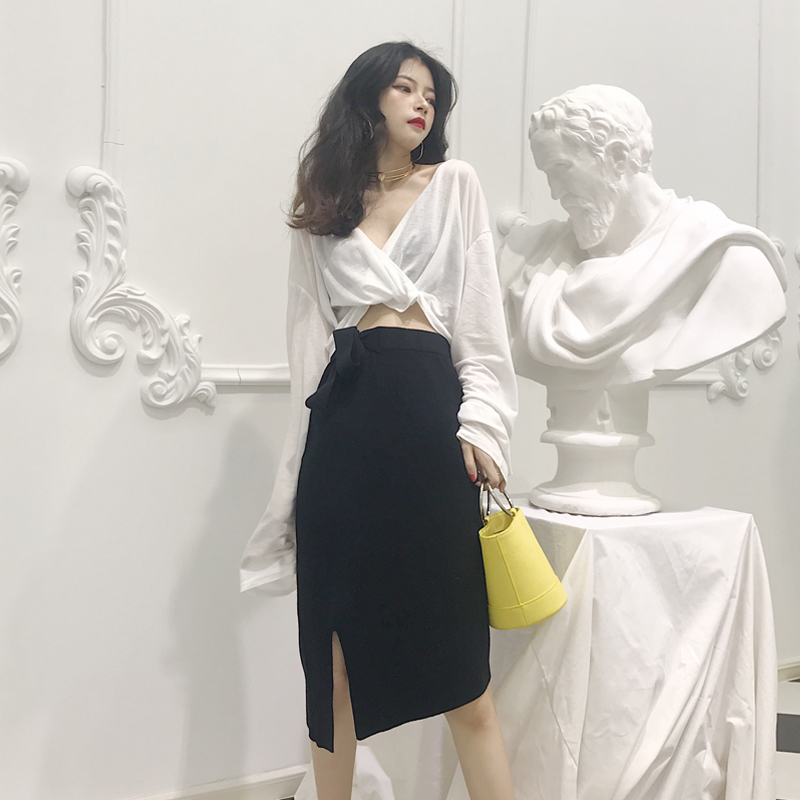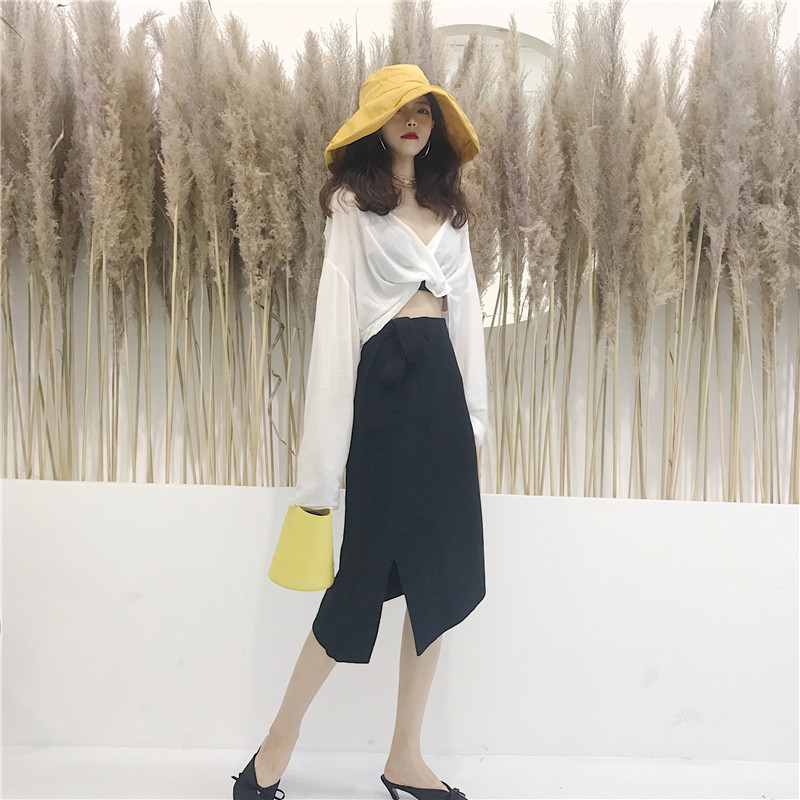 / 2018新款韓版女秋季港風chic時尚套裝性感防曬衫高腰包臀半身短裙