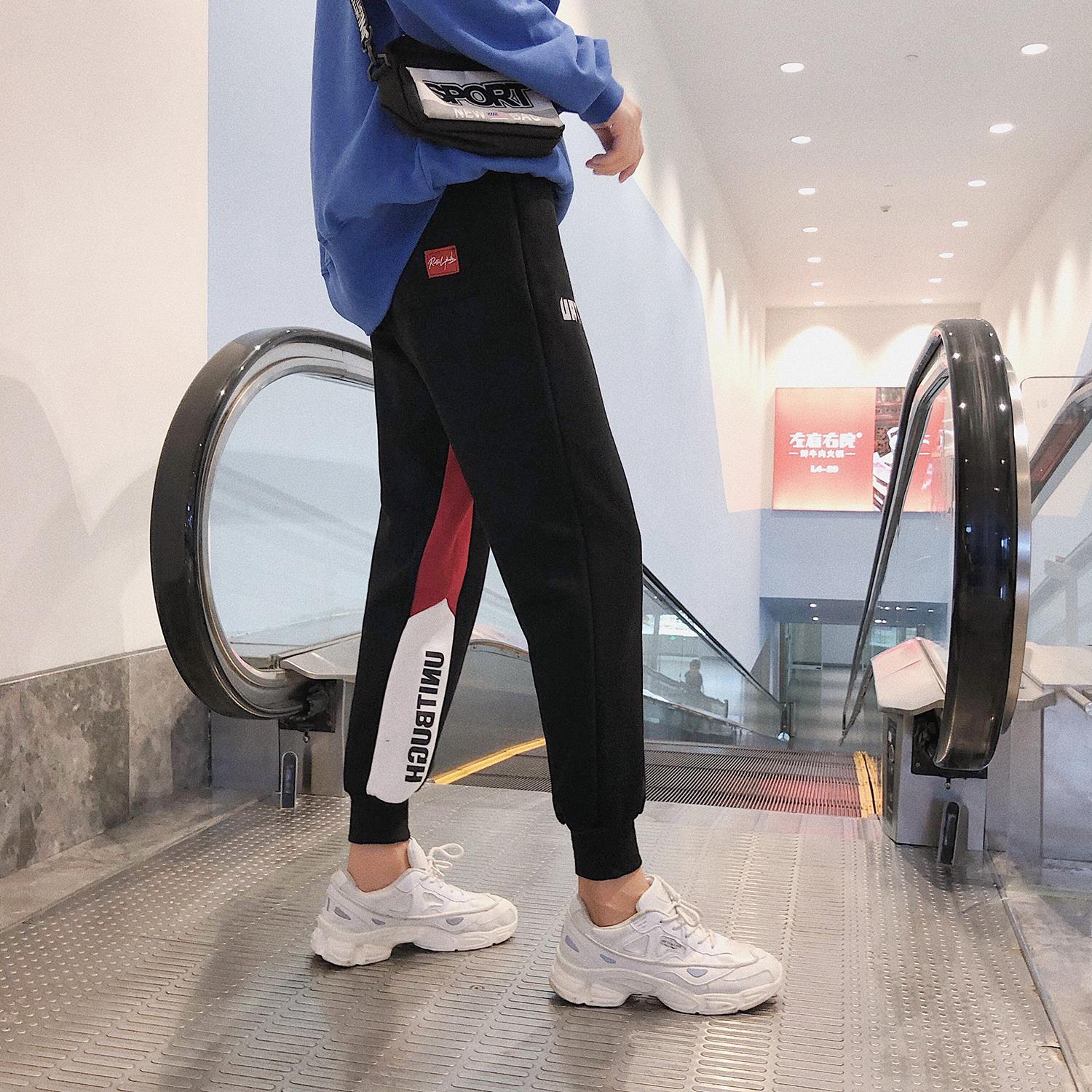 撞色褲子男士運動褲韓版潮流九分褲寬松休閑褲男裝長褲秋季運動褲