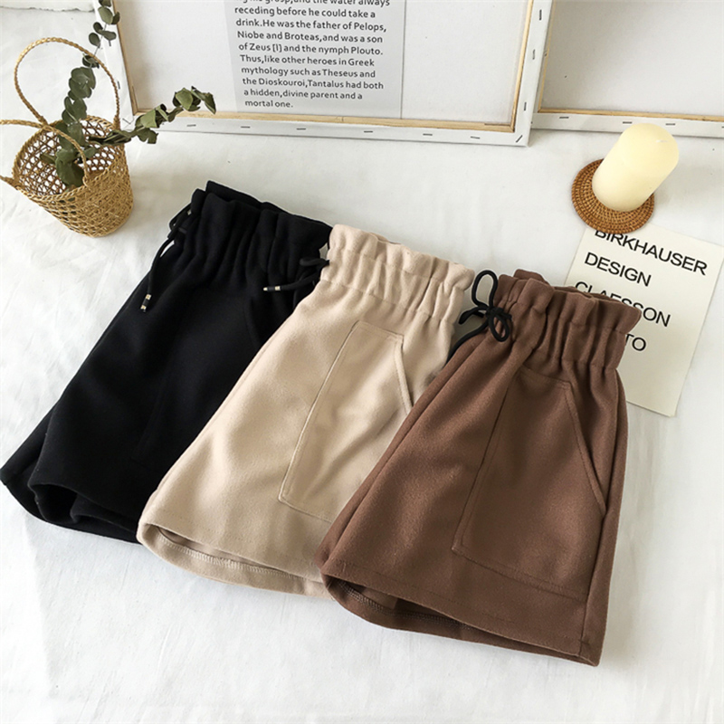 冬季外穿系帶高腰顯瘦休閑短褲2018新款韓版復古寬松闊腿褲子女