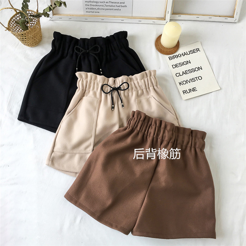 / 冬季外穿系帶高腰顯瘦休閑短褲2018新款韓版復古寬松闊腿褲子女