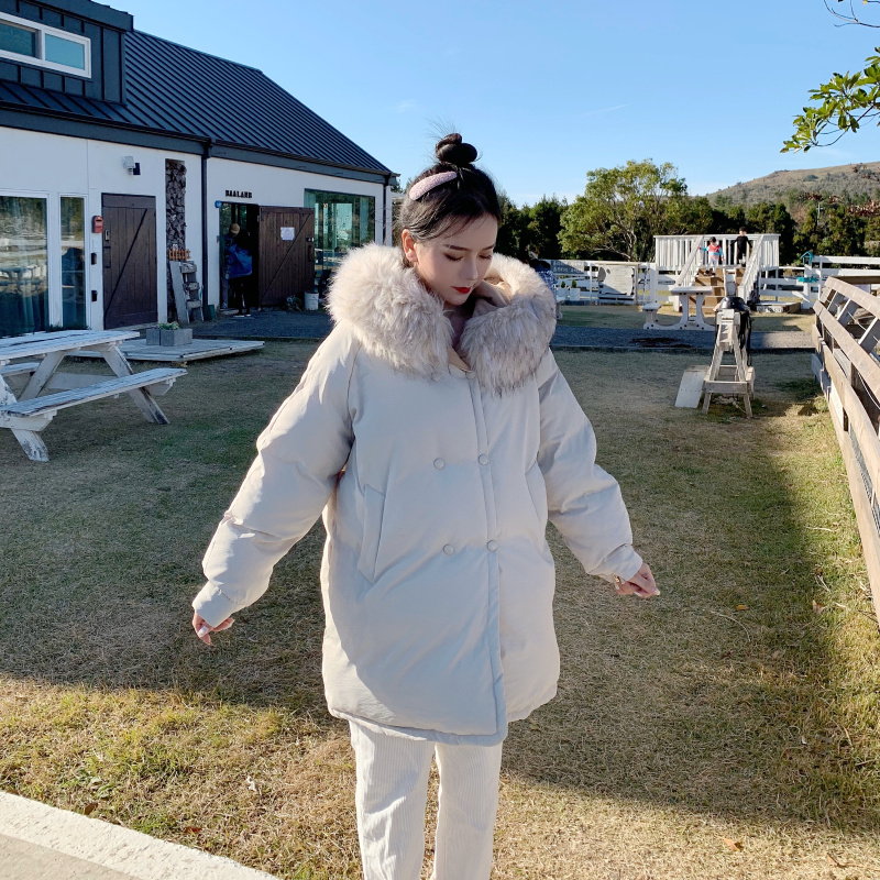 / 中長款韓版寬松連帽加厚大毛領面包棉服外套女秋冬2018新款棉衣女