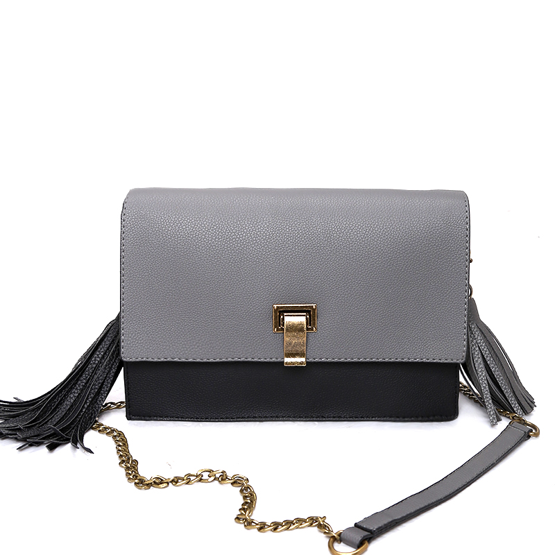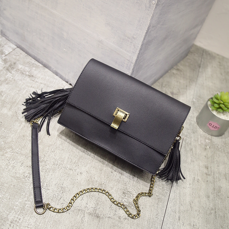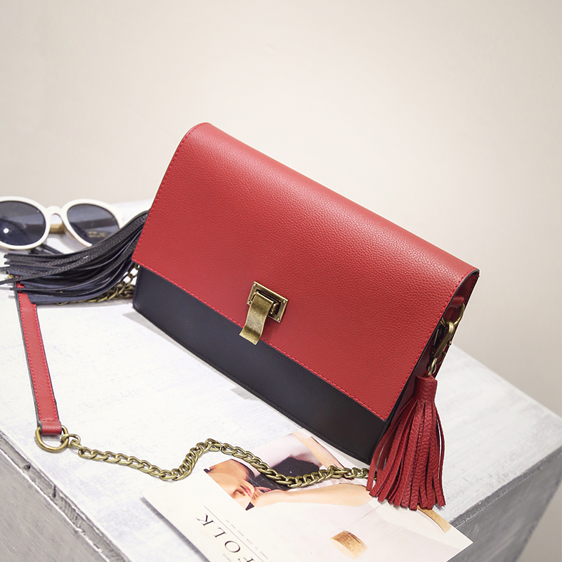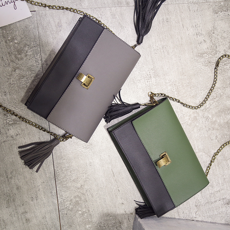 / 新款韓版撞色女包迷你鏈條小方包流蘇單肩包女小包休閑斜挎包
