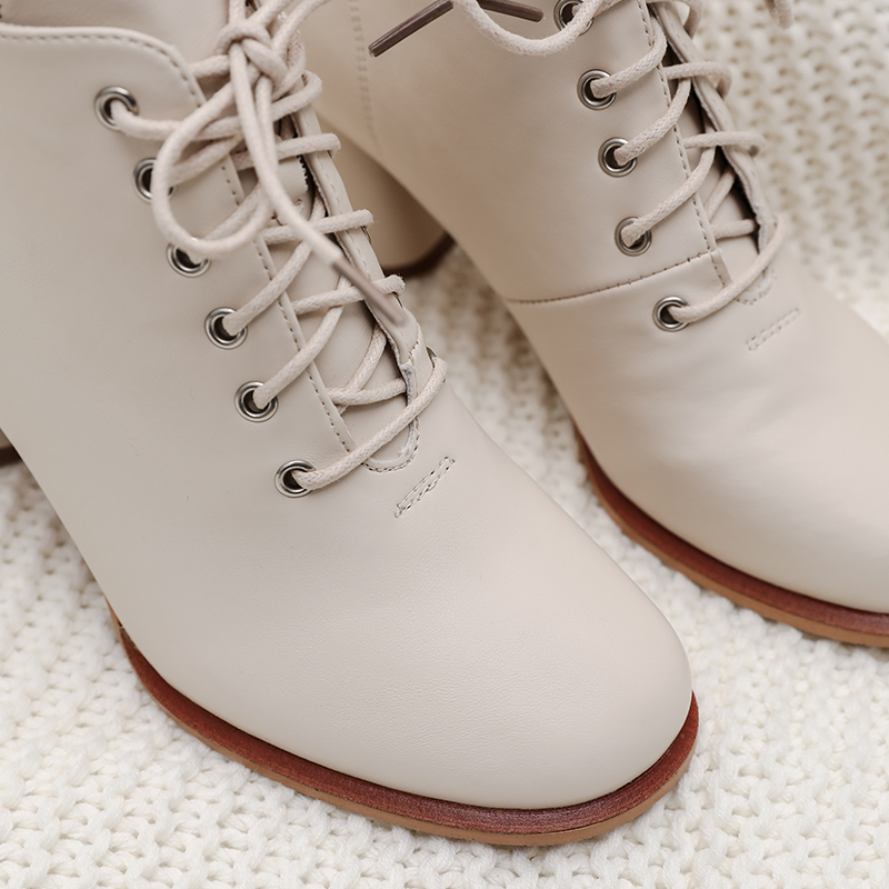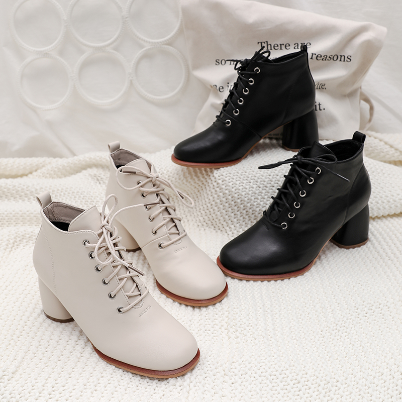 / MG小象歐洲站系帶高跟鞋女2018秋冬新款粗跟皮鞋圓頭簡約時尚短靴