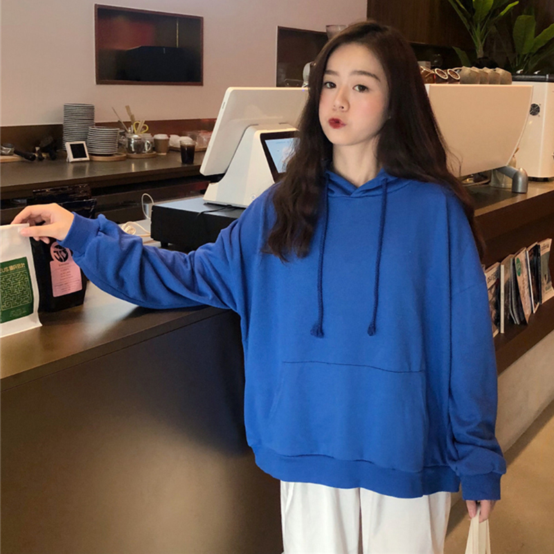 / 純灰色衛衣女秋2018新款長袖藍色韓版慵懶風上衣紫色寬松連帽外套
